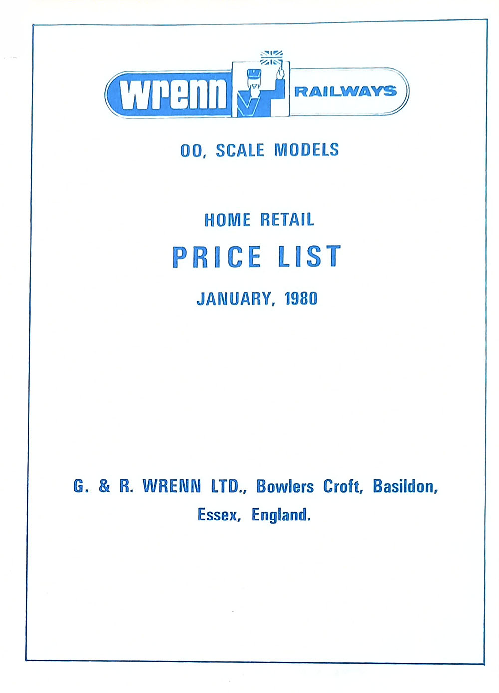 Katalogus van WRENN schaal 00. "Handboek", 4e editie. 1980. Brochure met afmetingen 210 x 145 mm en 51 pagina's. Uitstekende staat.