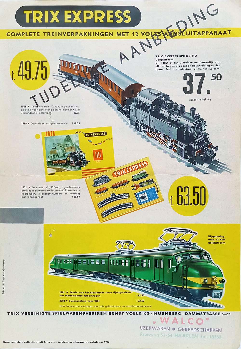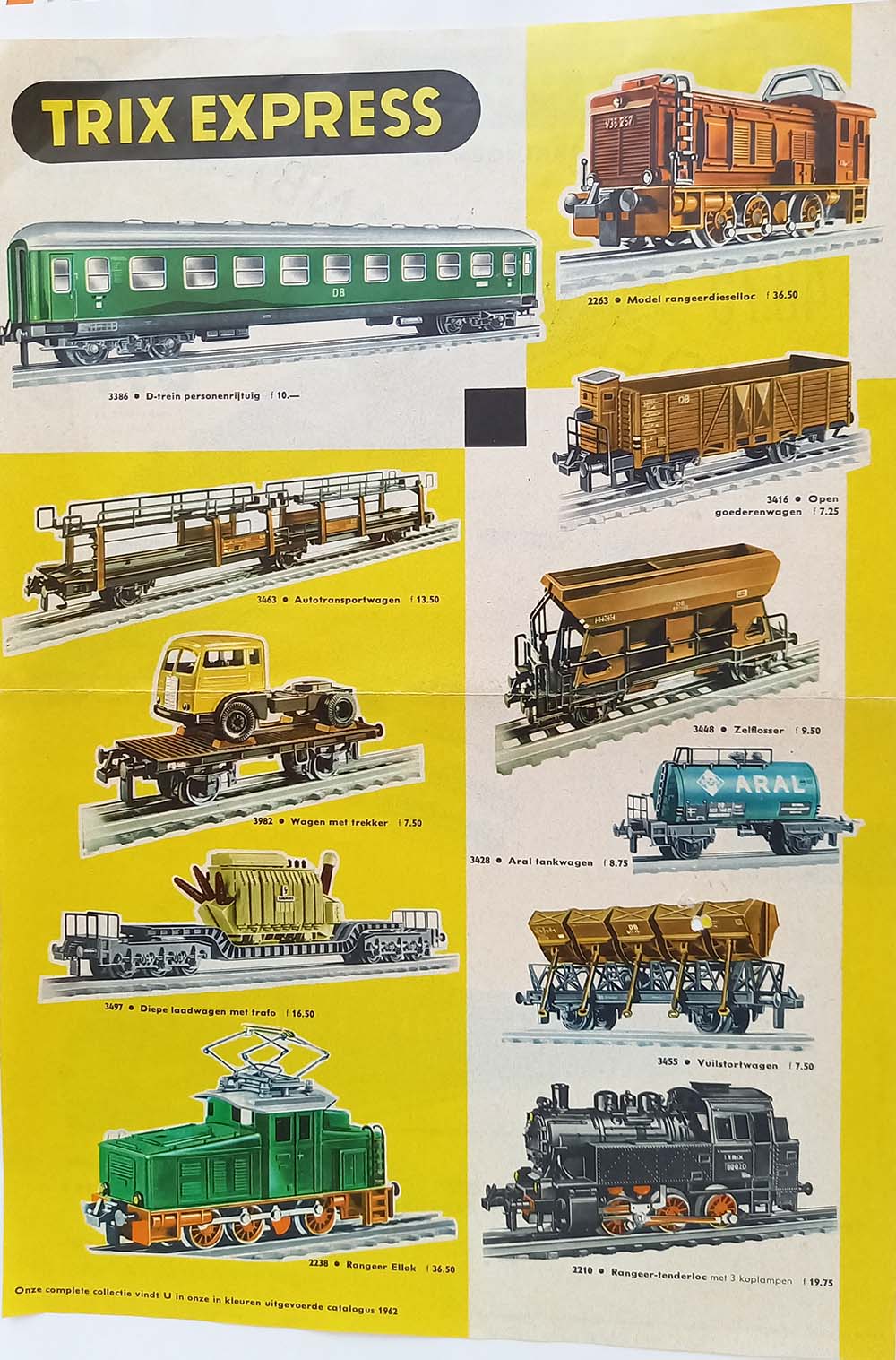 Trix leaflet op A4 formaat, 2 pagina's. Nederlandse tekst met o.a. aankondiging van de Hondekop.