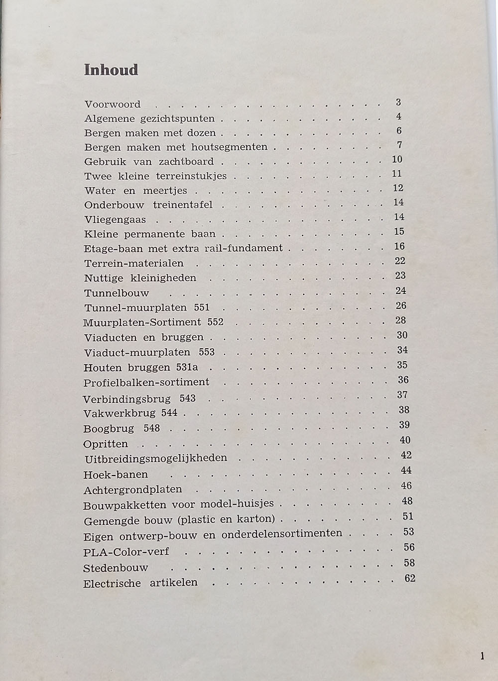 In deze brochure wordt uitvoerig ingegaan op diverse onderwerpen die met het bouwen van een modelbaan te maken hebben. Op de bijgevoegde foto's vindt u de inhoudsopgave. Dit is de oudere (en mogelijk eerste) versie van de serie. De informatie stamt uit de vorige eeuw, maar is nog steeds van toepassing.
