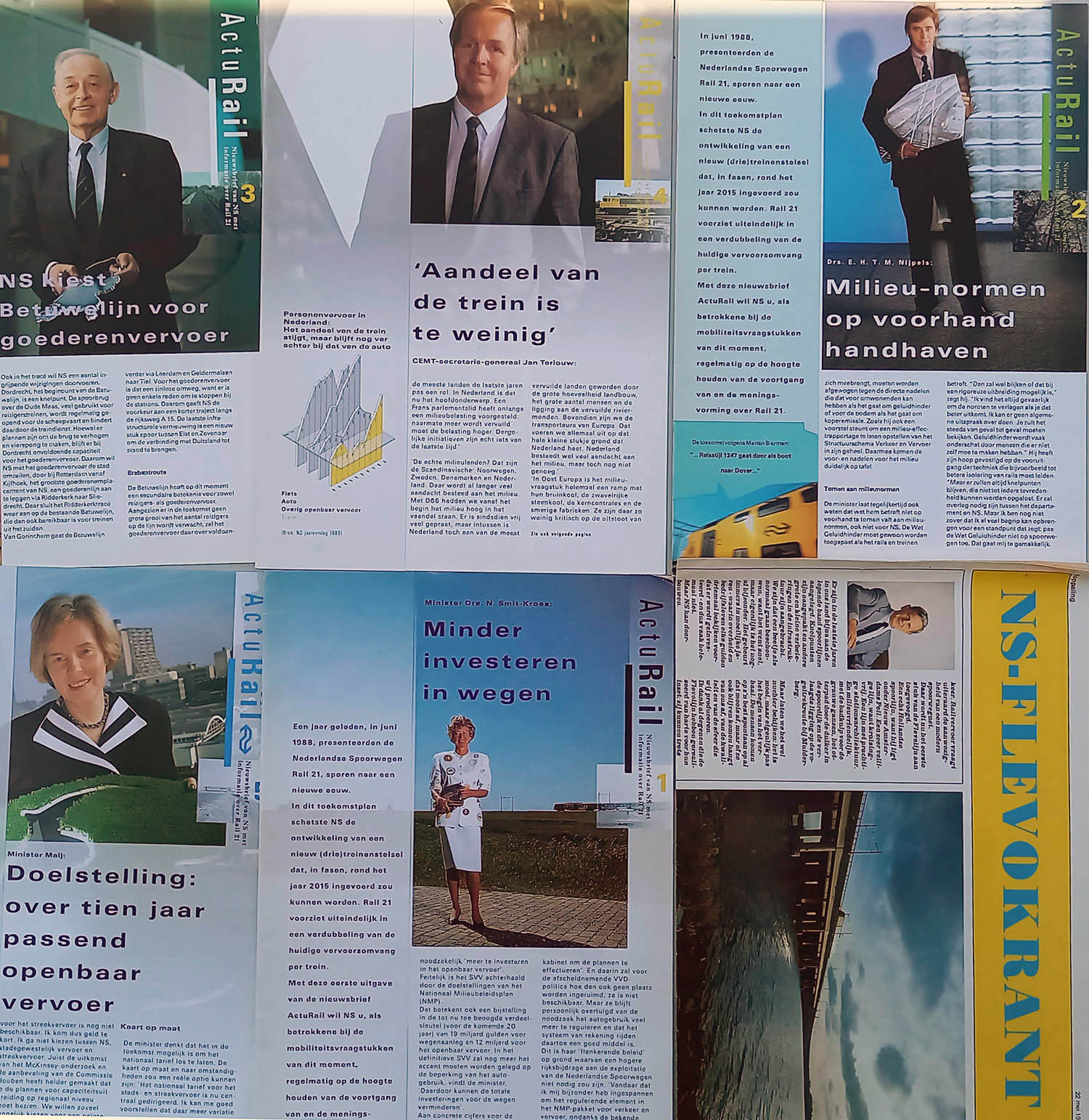 Nieuwsbrief over Rail 21; nrs 1, 2, 3, 4, 5 en de NS-Flevokrant. Eind 80-er jaren.