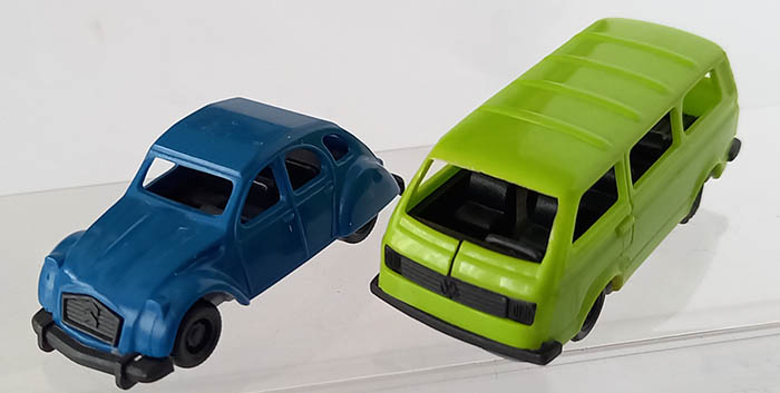 VW Minibus en Citroën 2CV, 2 st.