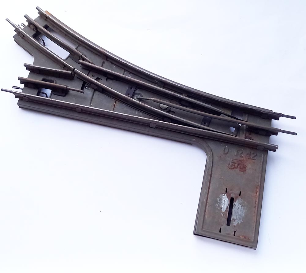 Met geïsoleerde middenrail, geschikt voor electrisch rijden. Spoor-0. Werkt niet, tong is wel met de hand te bewegen.