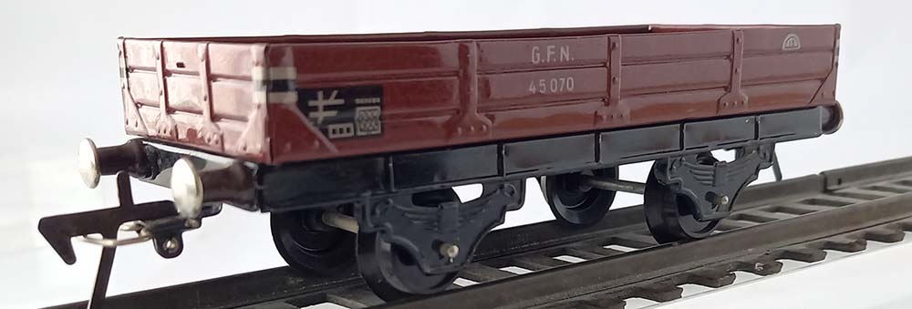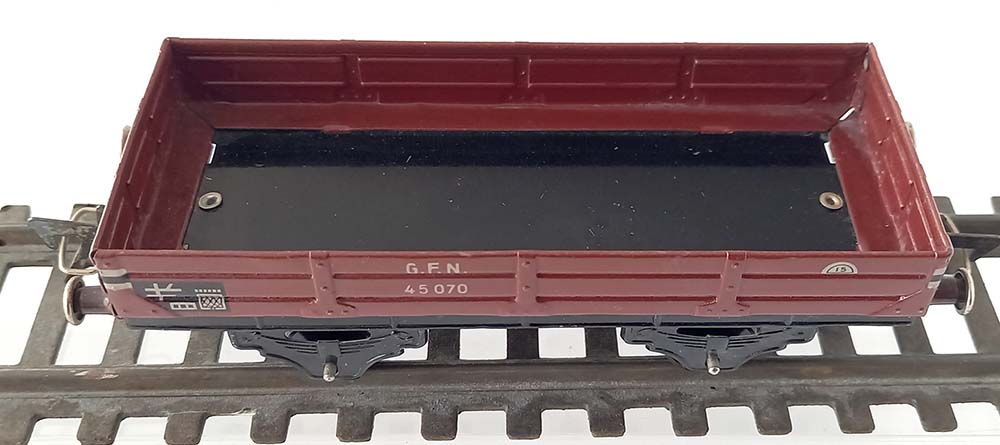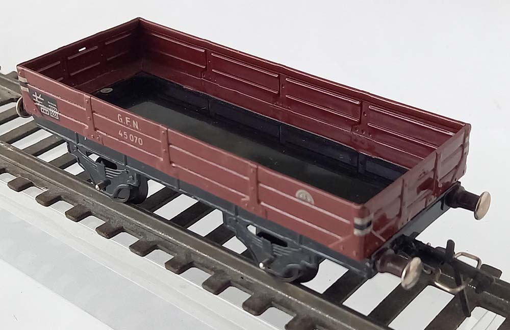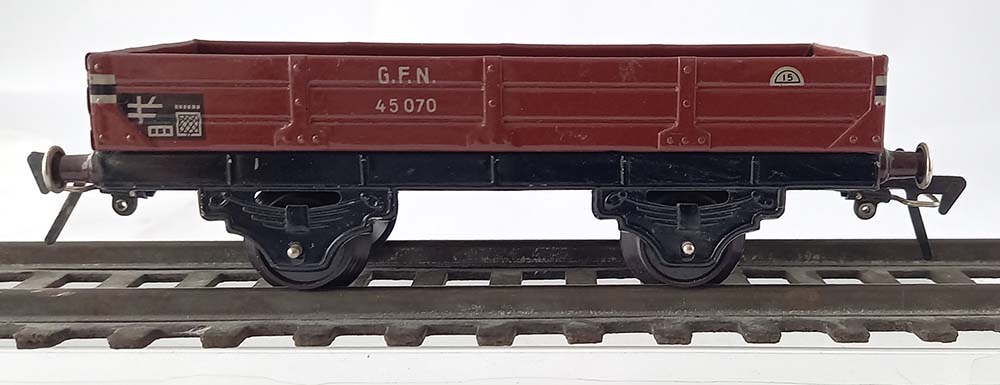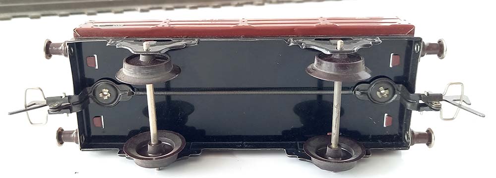 Spoor-0, 50-er jaren, 2-assig, bruin, plaatstaal, lengte 15 cm. Uitstekende staat.