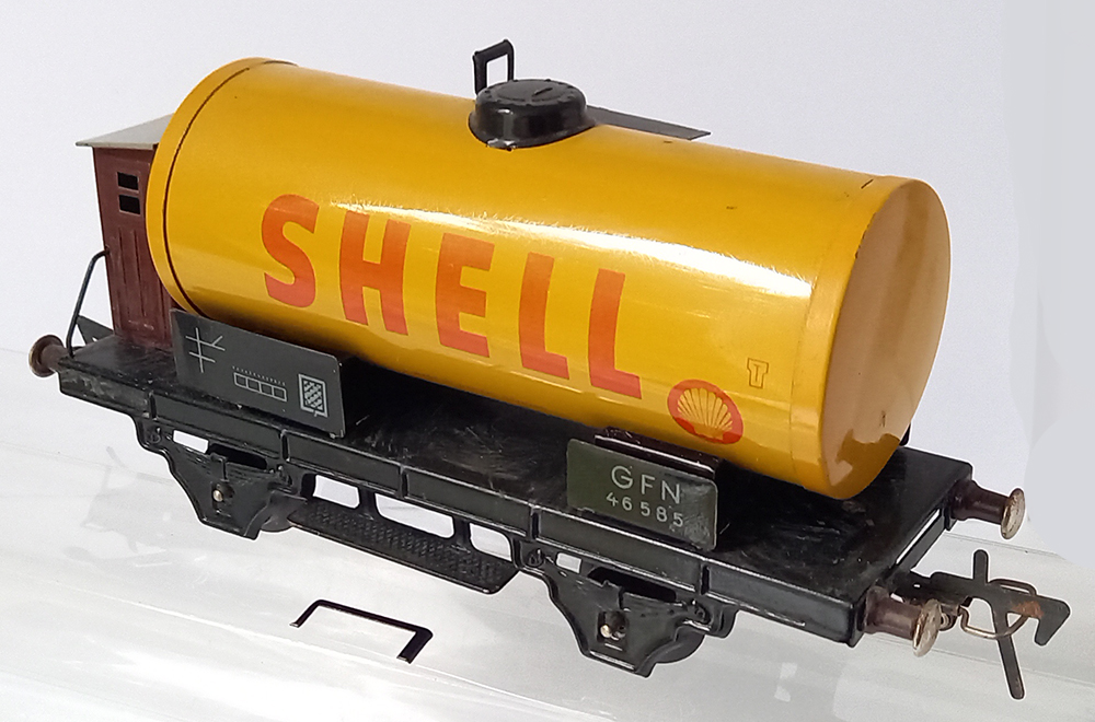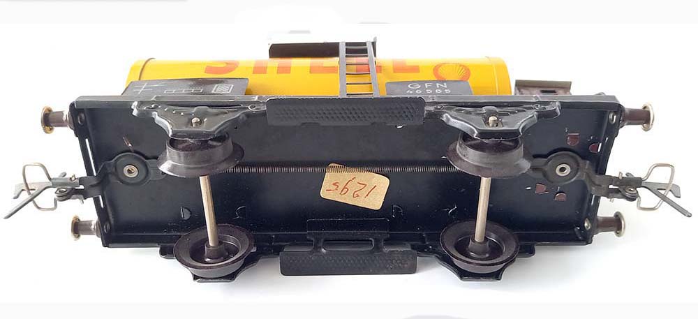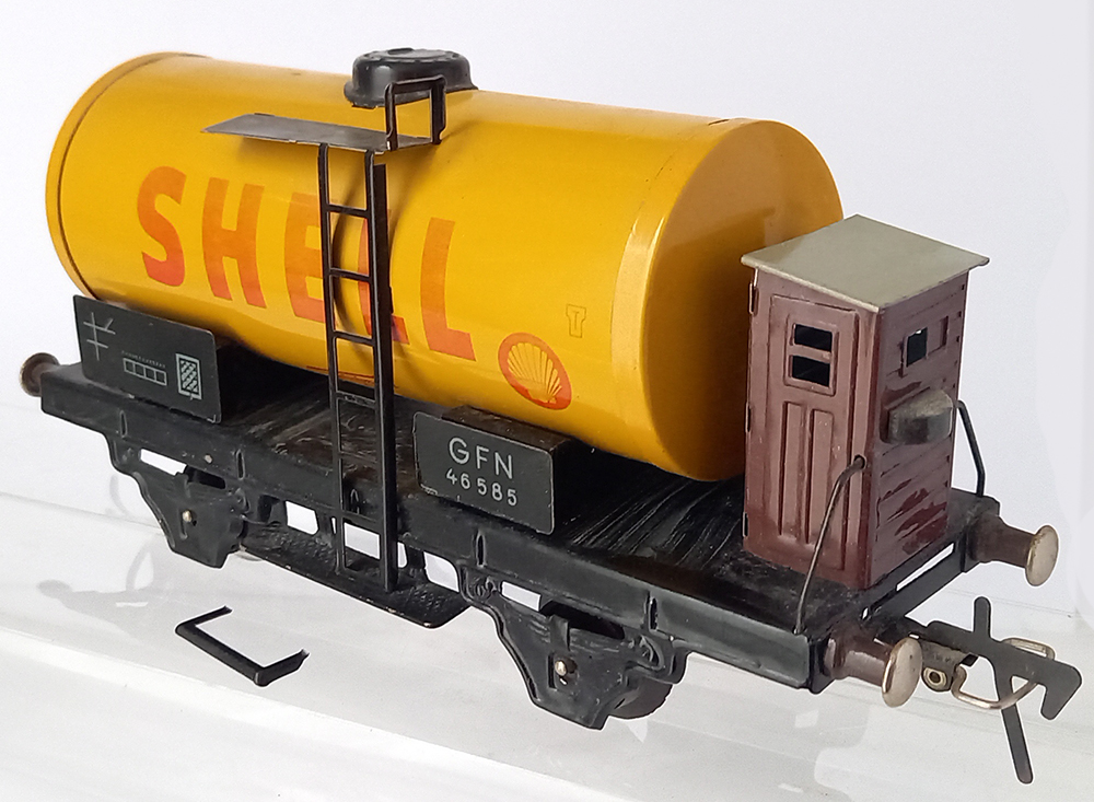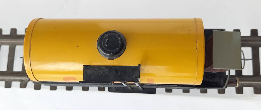 Spoor-0, 50-er jaren, 2-assig, plaatstaal, lengte 15 cm, met de kwetsbare galerijen bijna geheel intakt, maar 1 deel van de balustrade ligt los bij. Uitstekende staat.