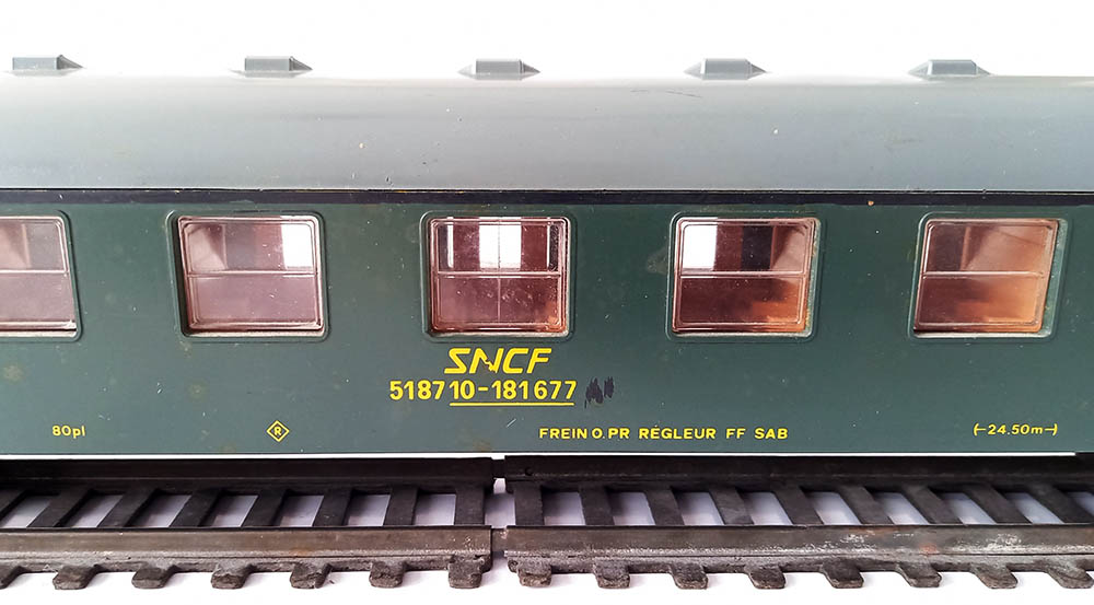 van de Franse spoorwegen (SNCF). Spoor-0. Uitstekende staat, maar de klasse aanduiding en A9 is uit het wagennummer verwijderd. Klik op de foto en lees de beschrijving op de detailpagina.