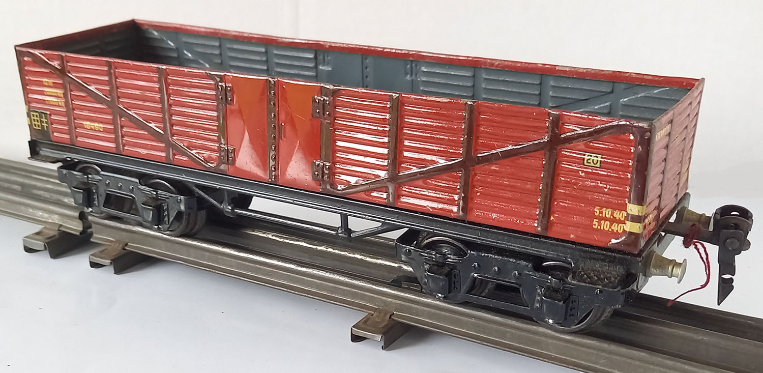 4-assig, roodbruin, gelitographeerd metaal, Lengte 24,5 cm. Spoor-0, produktieperiode 1934 - 1940. Uitstekende staat.