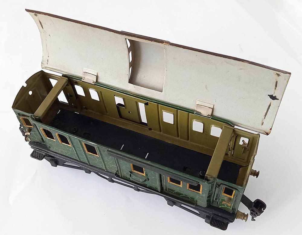groen, met gele vensterramen. Goede staat.