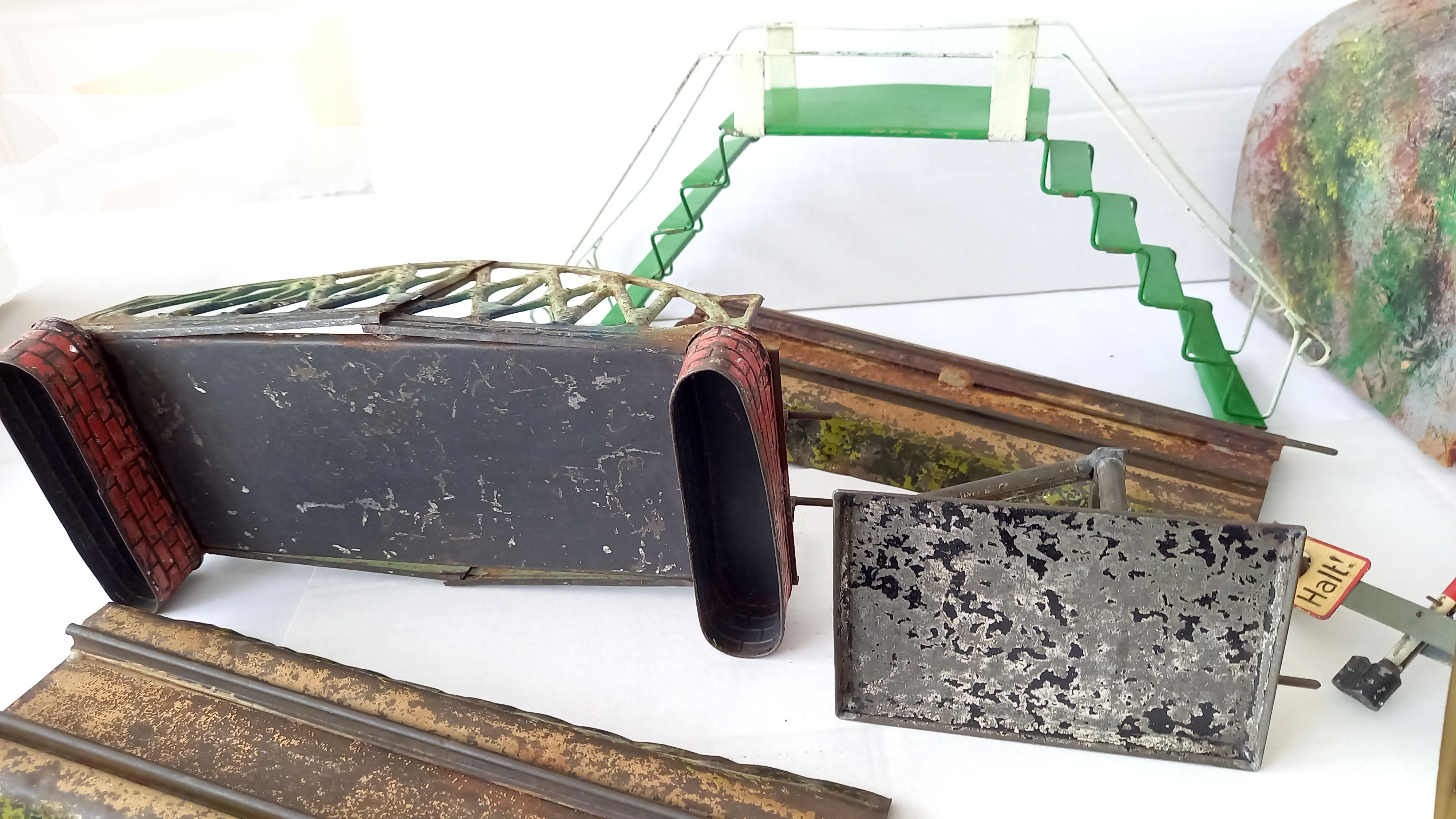 Merken en zelfbouw. Overweg op de voorgrond is van hout, waarschijnlijk zelfbouw. Doorrijhoogte tunnel is 11,5 cm.