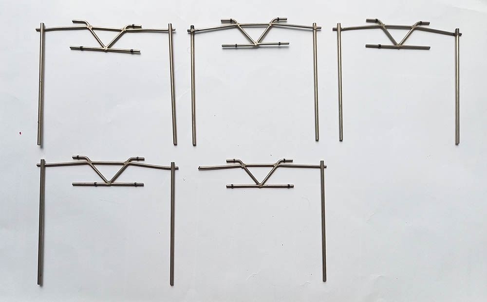 4 metalen portalen en 1 incompleet portaal. Geheel metaal. Breedte 10,5 cm. Hoogte 10 cm. Prijs is voor het geheel.