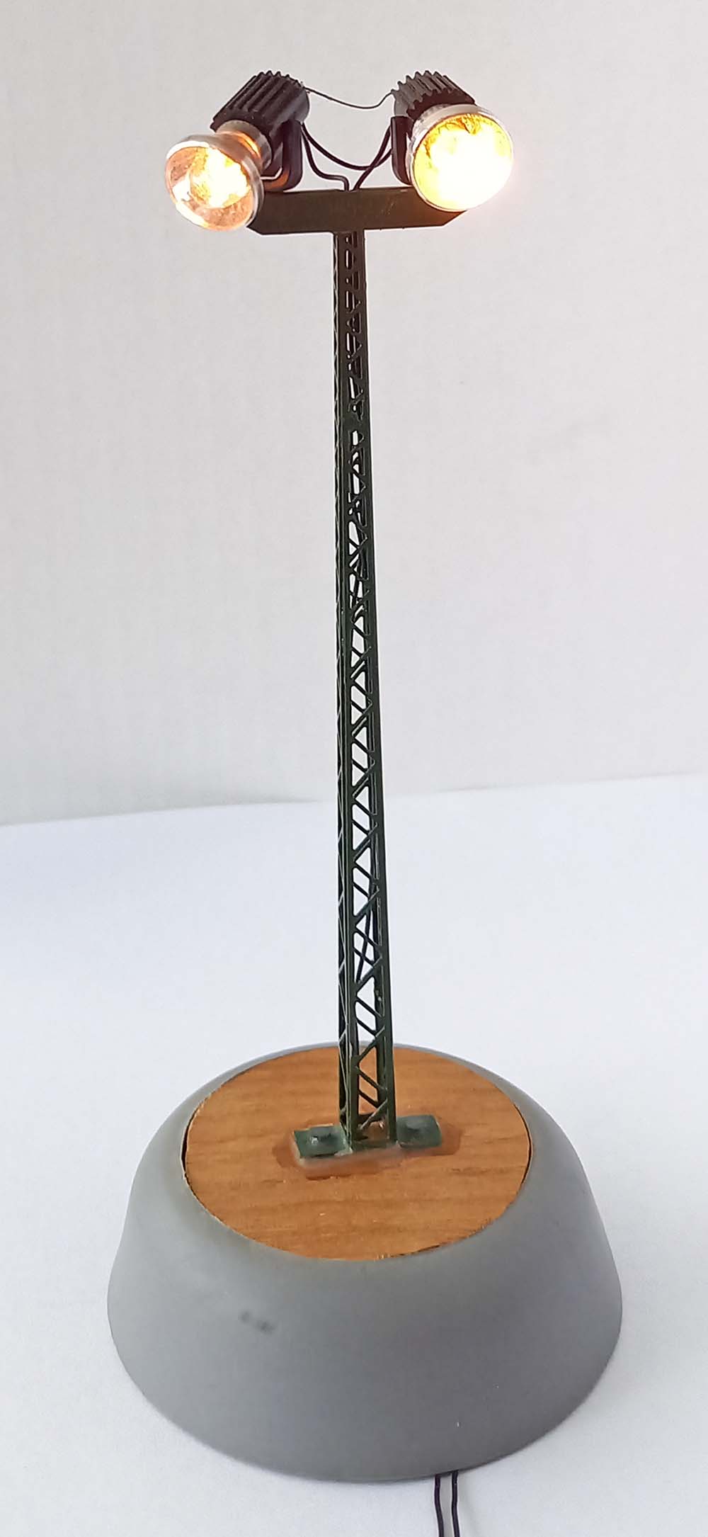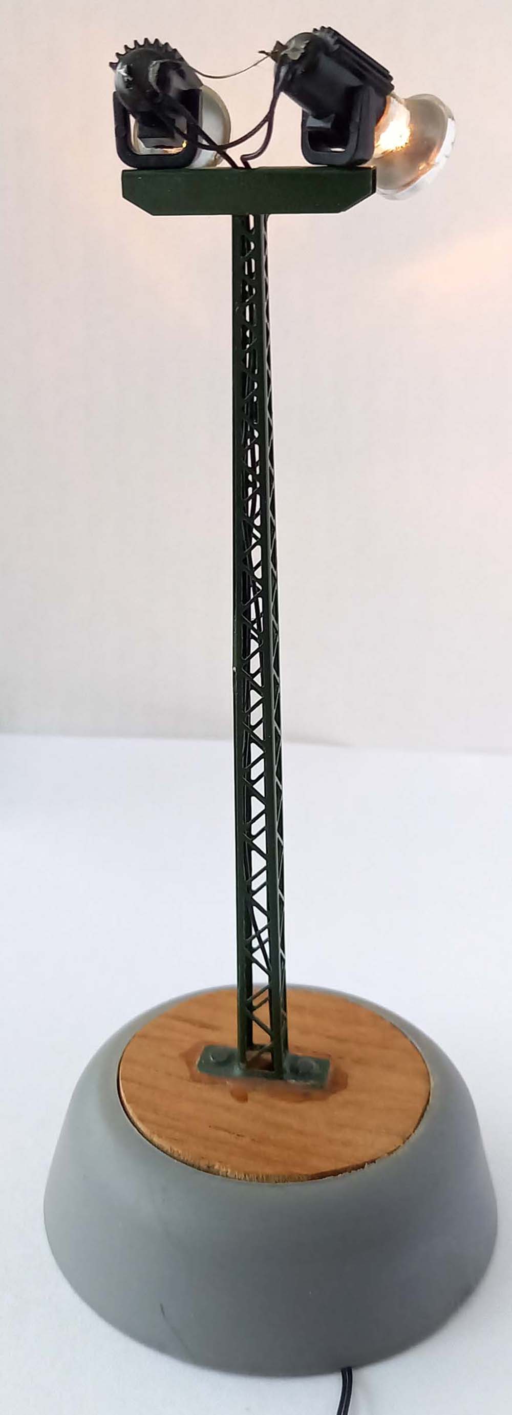 Goed getest. Schijnwerper is op een houten voet geplaatst.