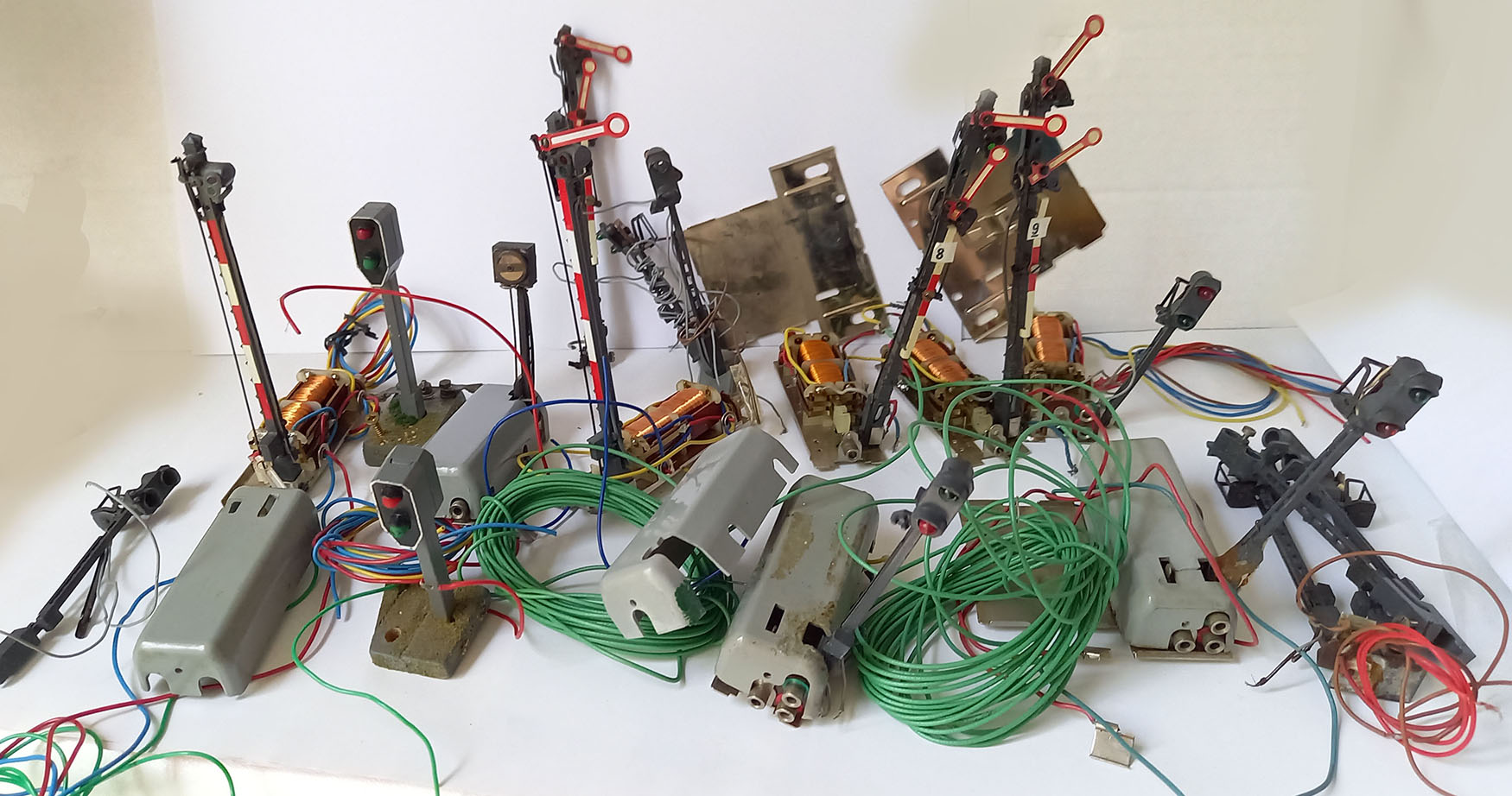 div. onderdelen van Märklin seinen, niets getest. Zie foto's voor inhoud van dit kavel.