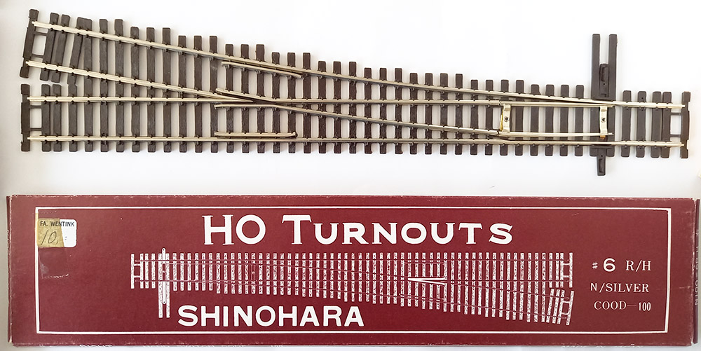 Shinohara, code 100, nikkel zilver, recht wissel rechts, handbediening, uitstekende staat, originele verpakking.