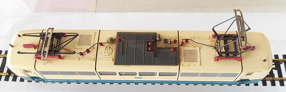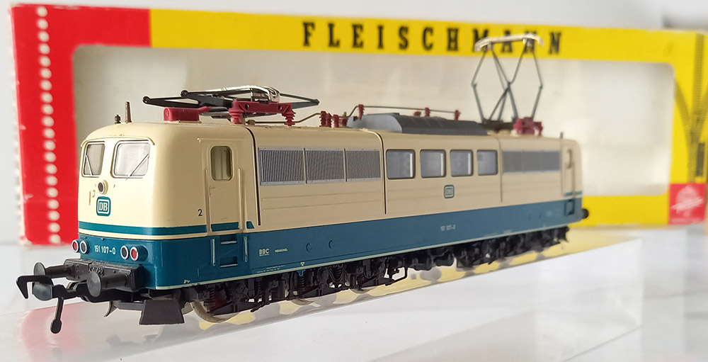 6-assig van de Duitse Spoorwegen. Lakering oceaanblauw/beige. Verende dakstroomaf-nemers, verlichting (slechts aan 1 zijde werkend), keuze voor stroomafname via boven- of benedenleiding. 4-antislipbanden. Haakkoppeling. Getest, gesmeerd en goed rijdend. Wordt geleverd in de originele verpakking. Geen handleiding.