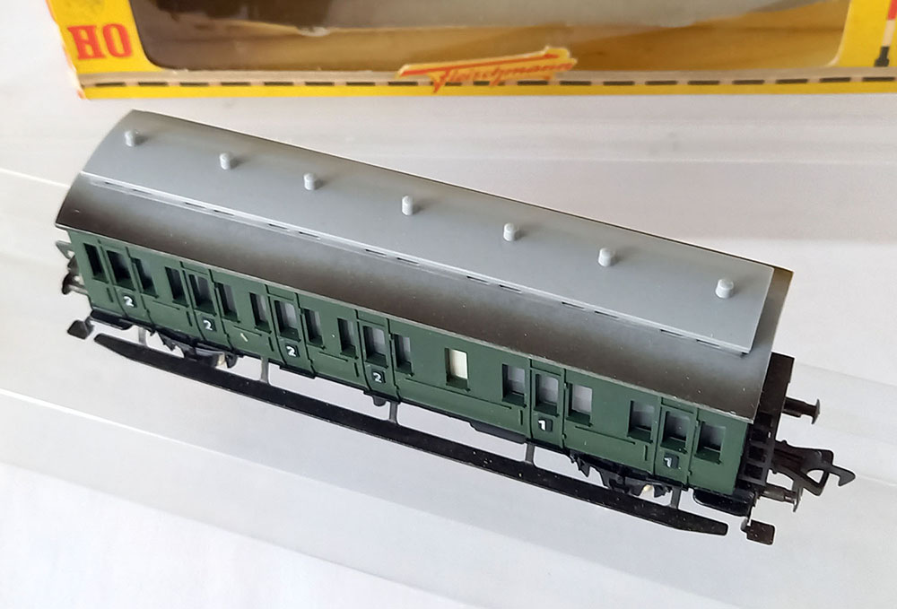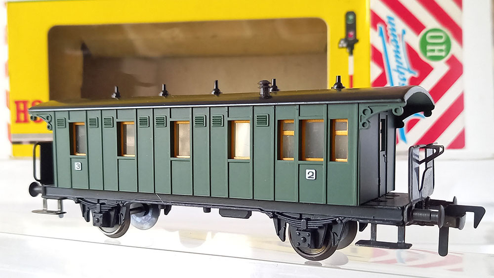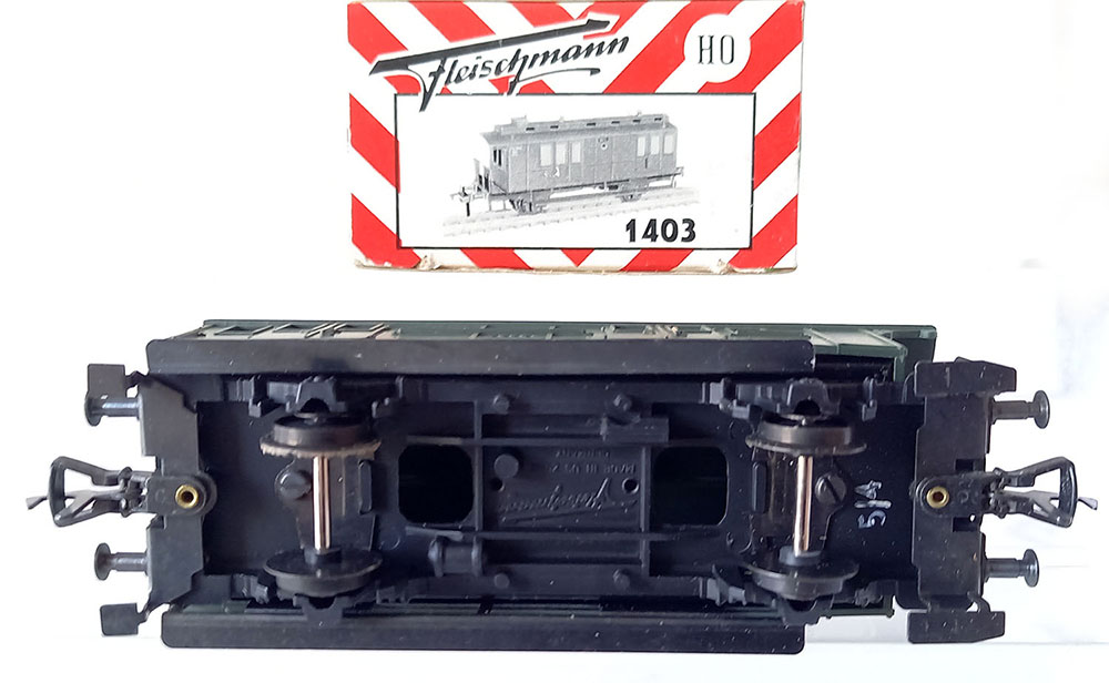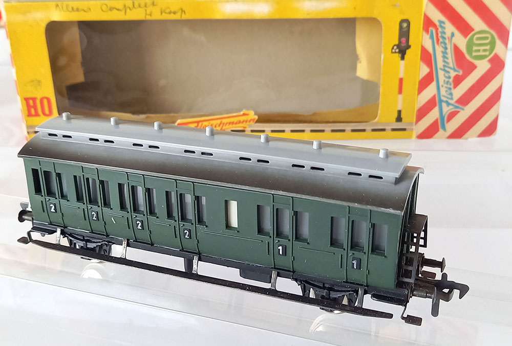 - 1406 CoupƩrijtuig, type "BC Pr21 van de Duitse Reichsbahn, onderstel metaal, bovenbouw kunststof, Uitstekende staat in originele verpakking. Geproduceerd van 1958-1963.