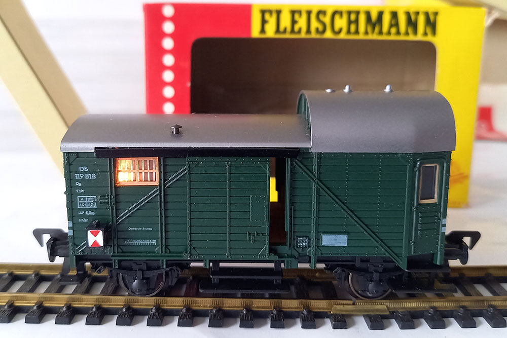 - 1468 Conducteurswagen, 2-assig, groen, type Pwg van de Duitse Spoorwegen, af fabriek voorzien van binnen- en sluitverlichting. Uitstekende staat in originele verpakking. 1967-1976.
