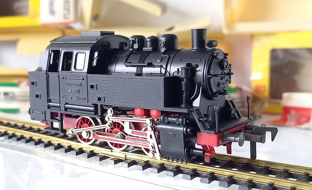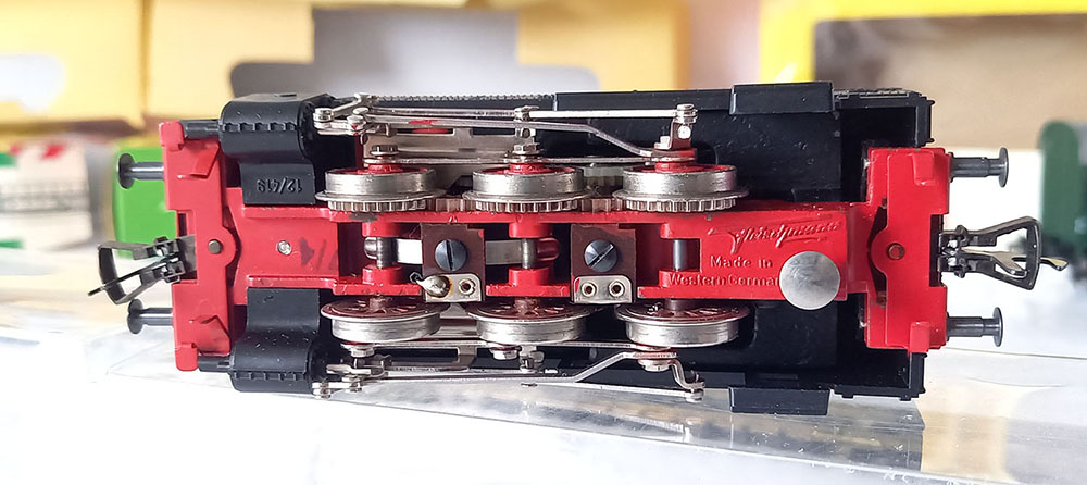 - 1321 Goederentreinloc BR80 van de DB. 3-assig, lengte 115 mm, Uitstekende gedetailleerd. Gesmeerd en uiteraard uitstekend rijdend. Verlichting voor en achter. Model uit de 60-er jaren zo goed als nieuw in de originele verpakking met gebruiksaanwijzing. 1962-1969. Versie met zwarte trappen.