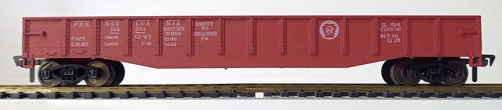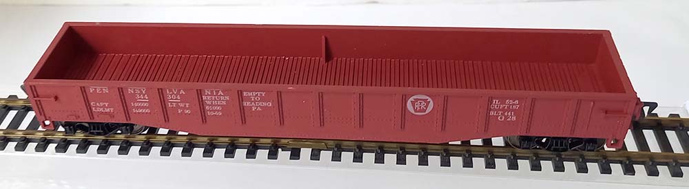 Gondola van de Pennsylvania RR. Wagennummer 344304, bruin, 192 mm, Uitstekende staat.