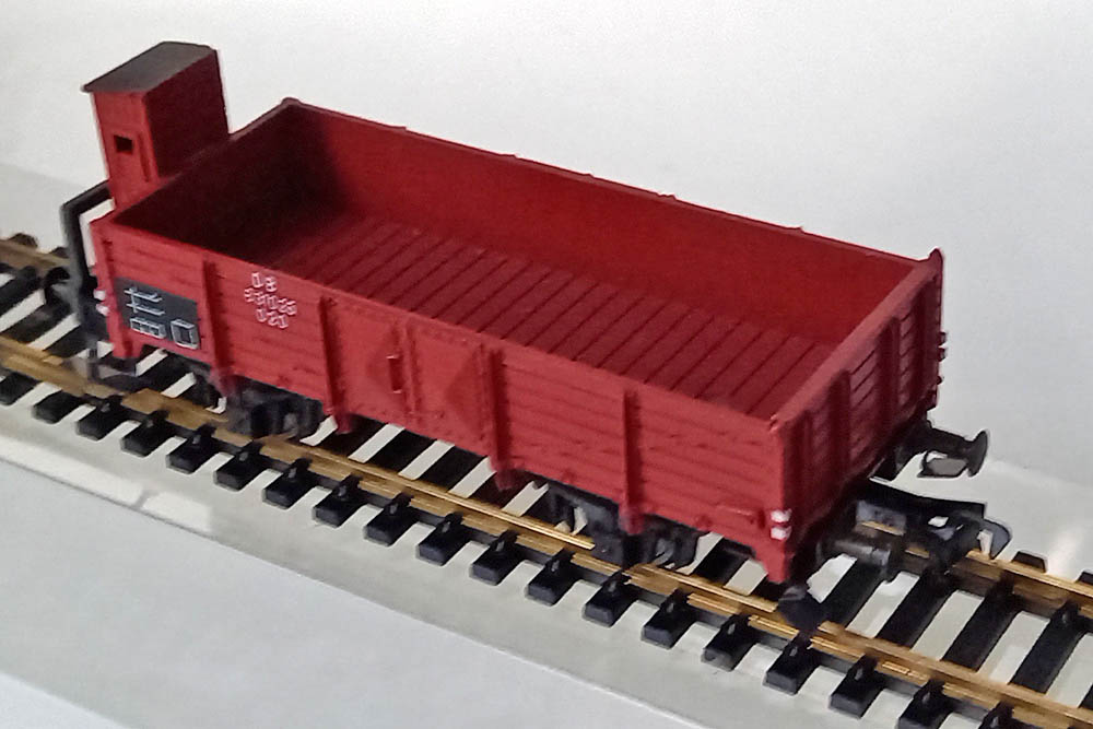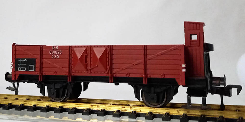van de DB, met remmershuisje, roodbruin, metalen onderstel. 110mm. Nouveauté van 1970. Uitstekende staat.