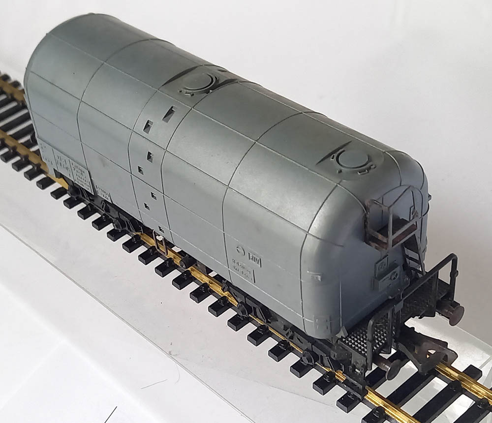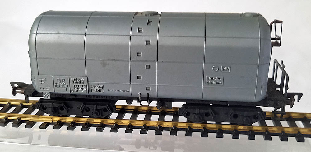 ontstaan uit bouwpakket. Stookolie wagen. Chassis van metaalspuitgietwerk met een ketel van kunststof. Lengte over de buffers 140 mm. Redelijk, maar beetje smoezelig.