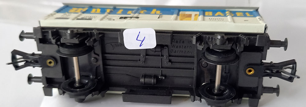 Blikken opbouw, onderstel kunststof, kleur wit/blauw. Lengte 105 mm. In produktie van 1967 – 1974. Wordt geleverd in de originele verpakking. Uitstekende staat.