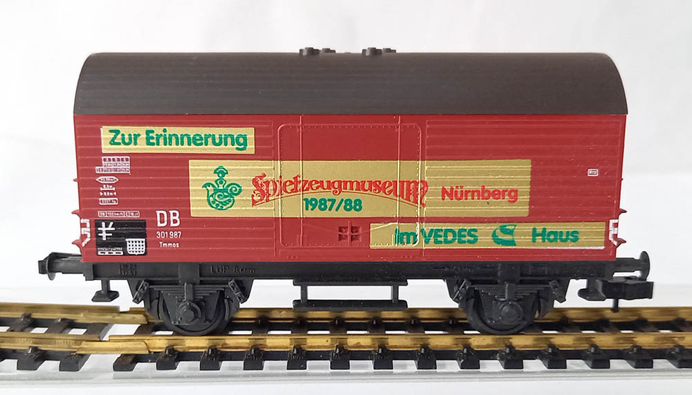 Uitstekende staat. 1 kortkoppeling en 1 haakkoppeling waarvan de haak mist. Toch zeldzame wagon uit 1987.