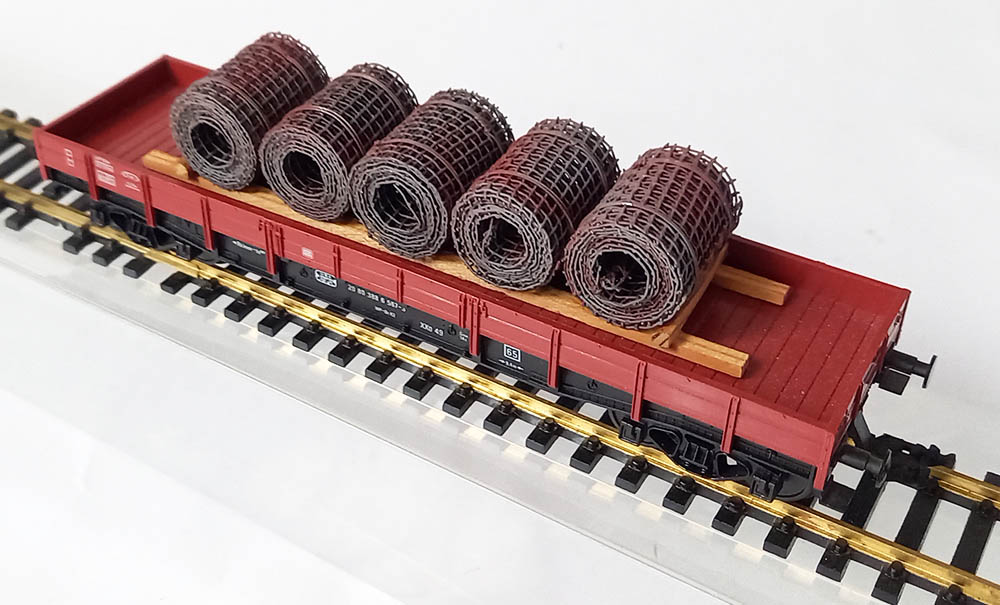met lading rollen staal, serie Rklmm-tu van de Duitse spoorwegen, lengte 155 mm. Epoche IV. Uitstekende staat.