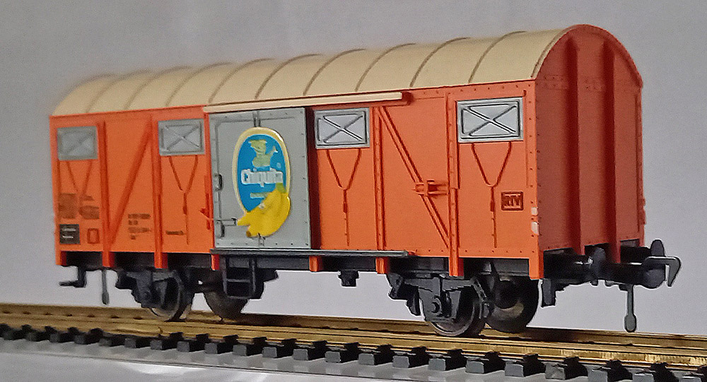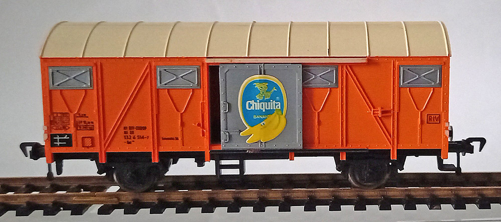 met opschrift "Chiquita". Deuren beweegbaar. Lengte 125 mm. Bananenwagen in uitstekende staat.