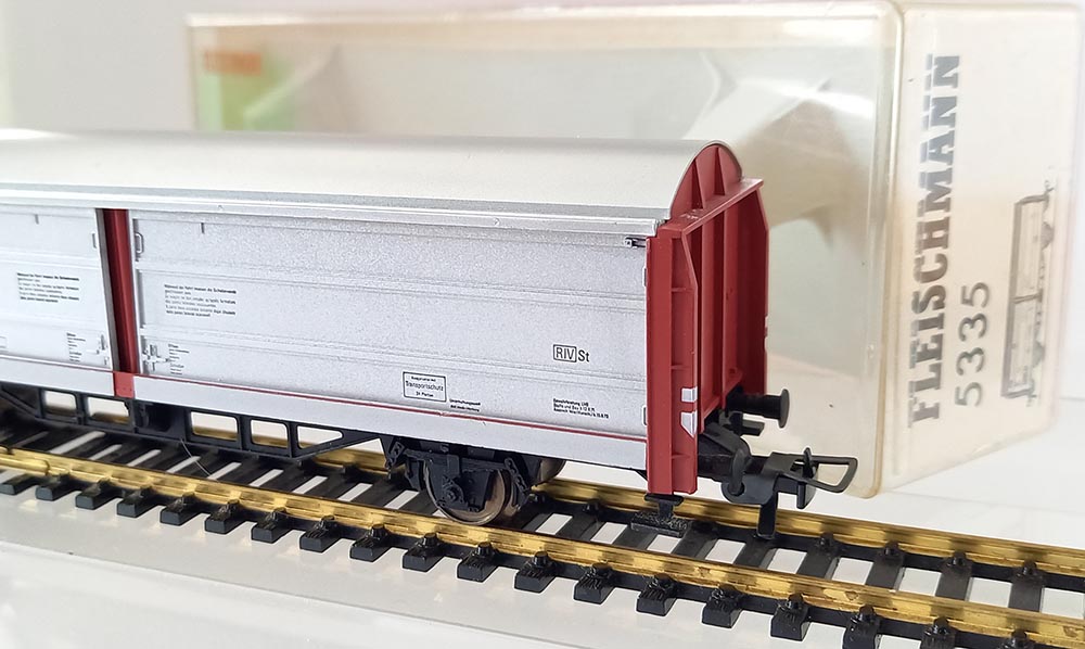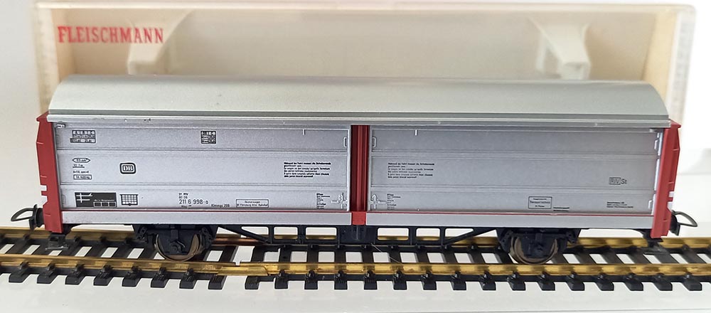 Hbis, van de Duitse Spoorwgen. Deuren beweegbaar. Beugelkoppelingen (verwisselbaar). Nieuwwaardige staat in originele verpakking.