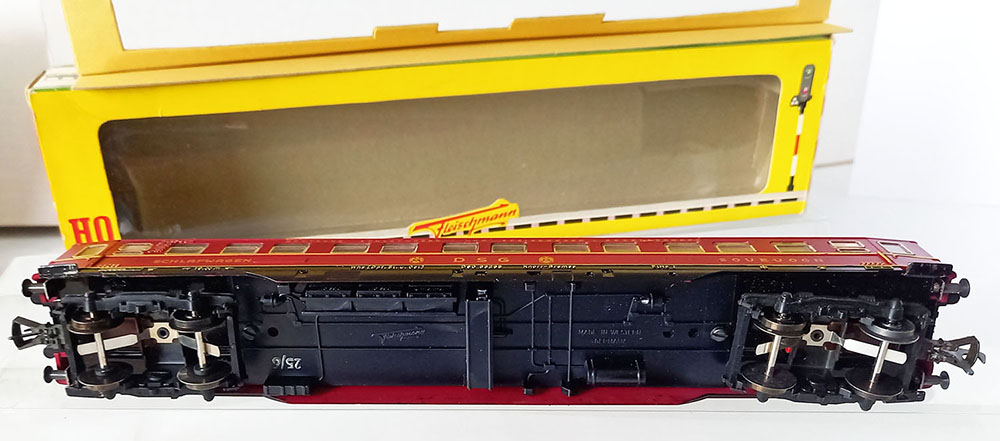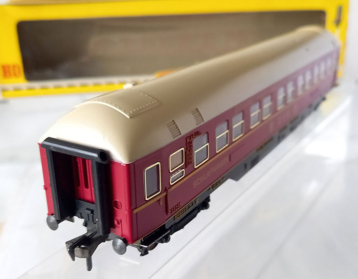 slaapwagen 1e/2e klasse type WLAB4üm van de DSG, beide zijden niet identiek, lengte 245 mm. Voorbereid voor binnenverlichting. Etiketten met koersen bijgevoegd. nieuwwaardige staat in originele verpakking.