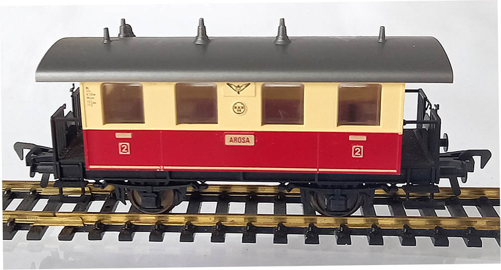 2e klasse, creme/rood. Model naar het voorbeeld van vele privespoorwegen. Lengte 105 mm. Met binneninrichting, ingezette en geopende ramen met imitatiehandgrepen. Uitstekende staat.