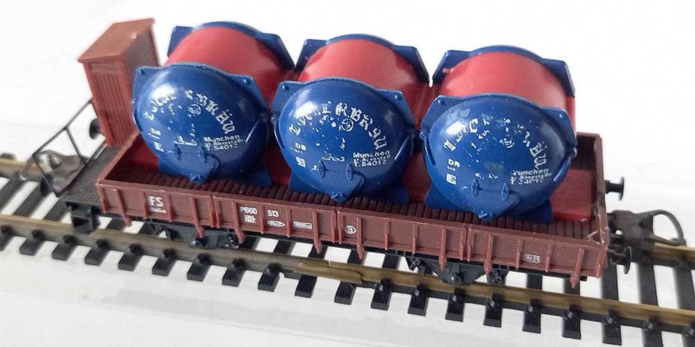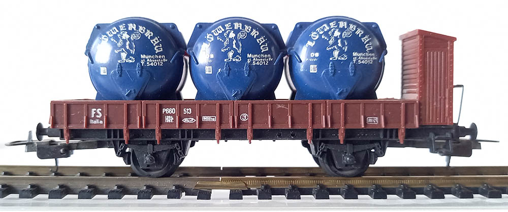 met 3 biercontainers "Löwenbräu". Lengte 116 mm. Goede staat maar aan 1 zijde wat afwrijving van de letters.