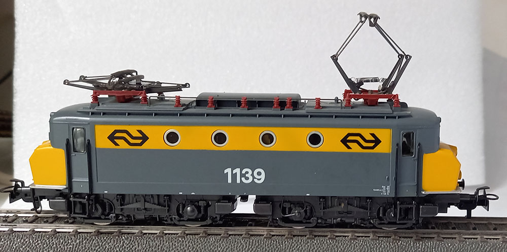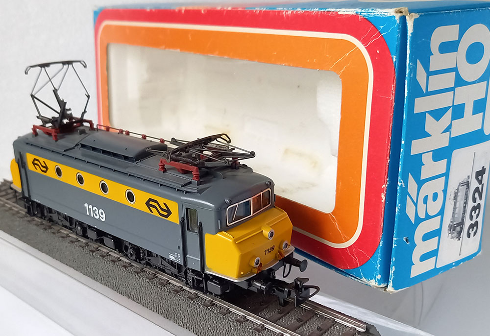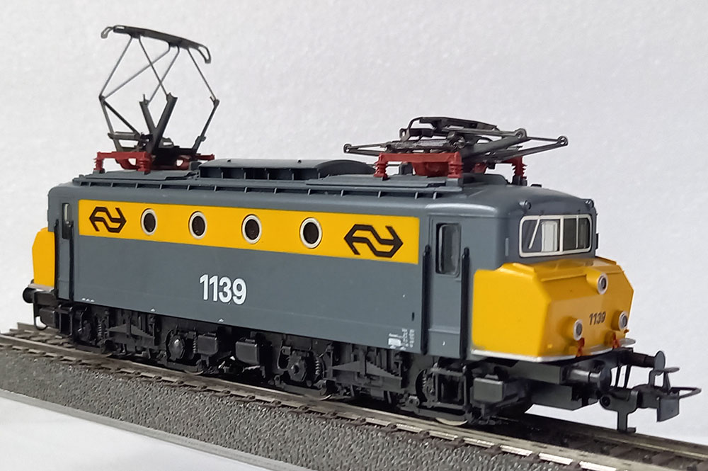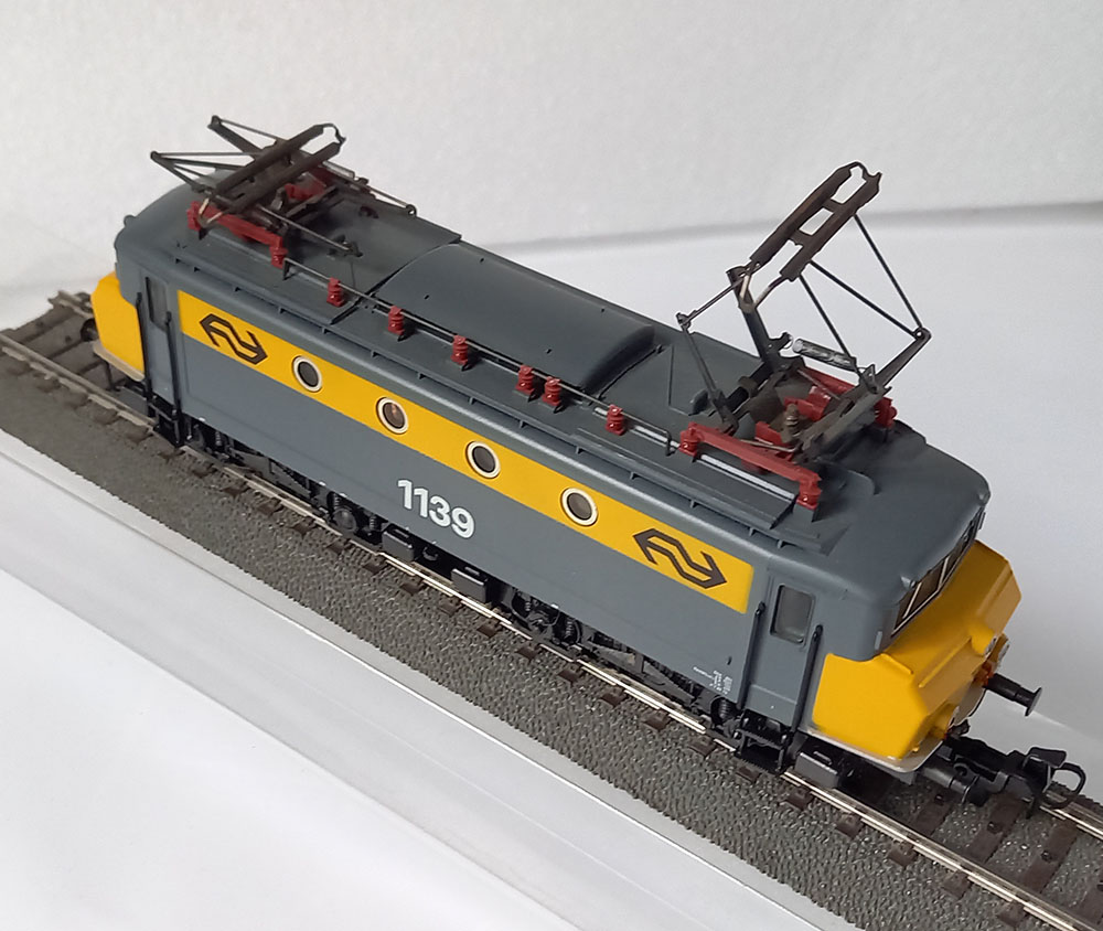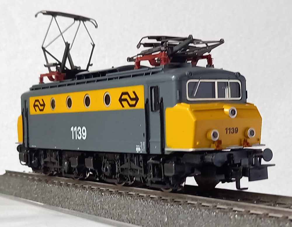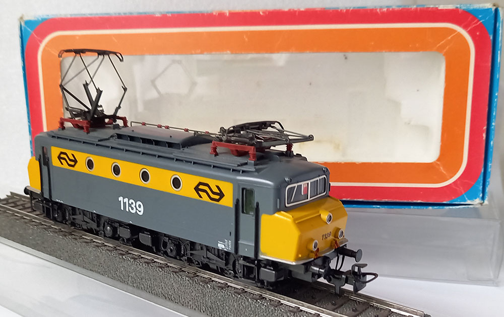 Electrische lok serie 1100 van de Nederlandse spoorwegen. Geel/grijs met geel front. Analoog. Kunststof. 3-puntsverlichting aan beide zijden. NS-logo. Nieuwstaat. Inclusief originele karton. 1983-1988. Uitstekende staat in ovp. 1 slipbandje missend.