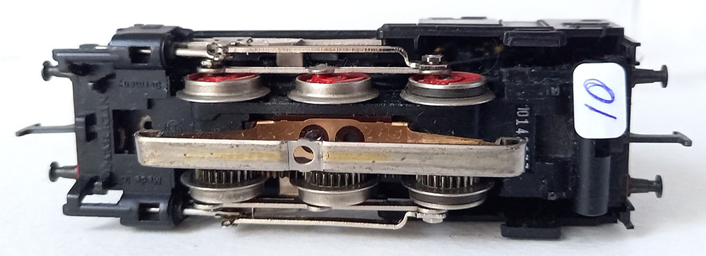 van de Duitse Spoorwegen. 3-Assig, 3 verlichte koplampen, Lengte 11 cm. Weinig gereden. Rijdt en schakelt goed. Uitstekende conditie.