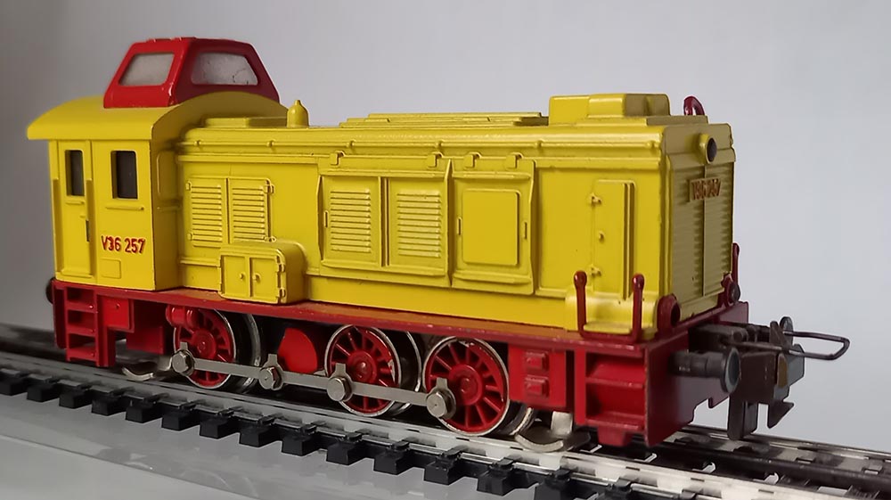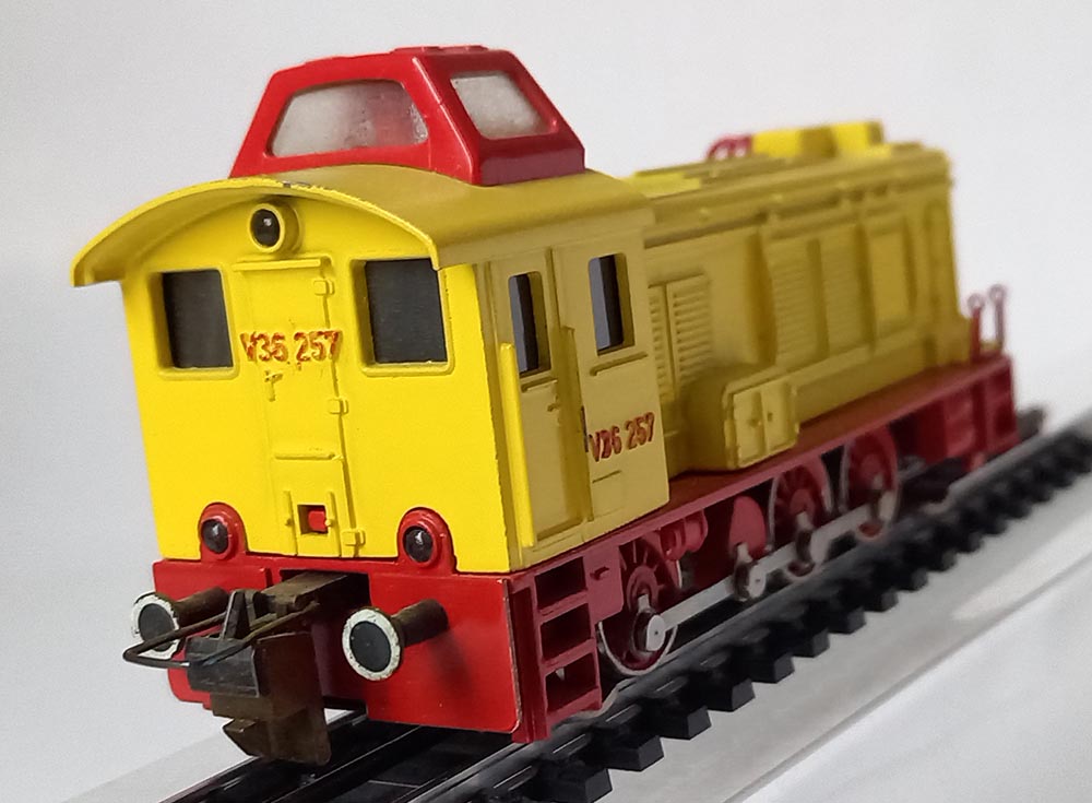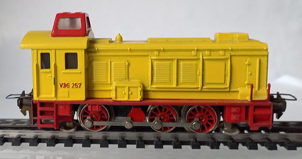 geel, eigen creatie, DB, Epoche III. Geheel metaal. Goed rijdend. Verlichting achter, lamp voor moet verwisseld worden (solderen).