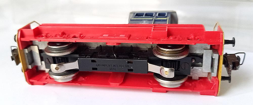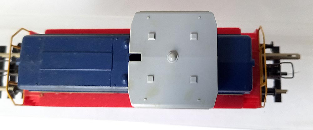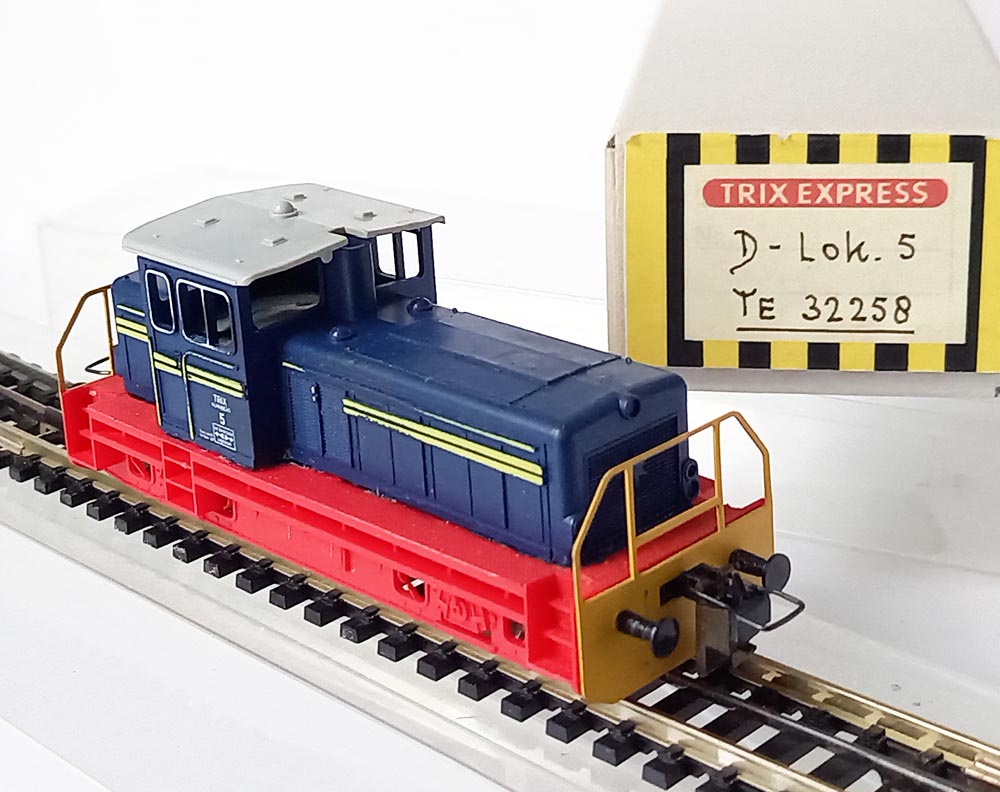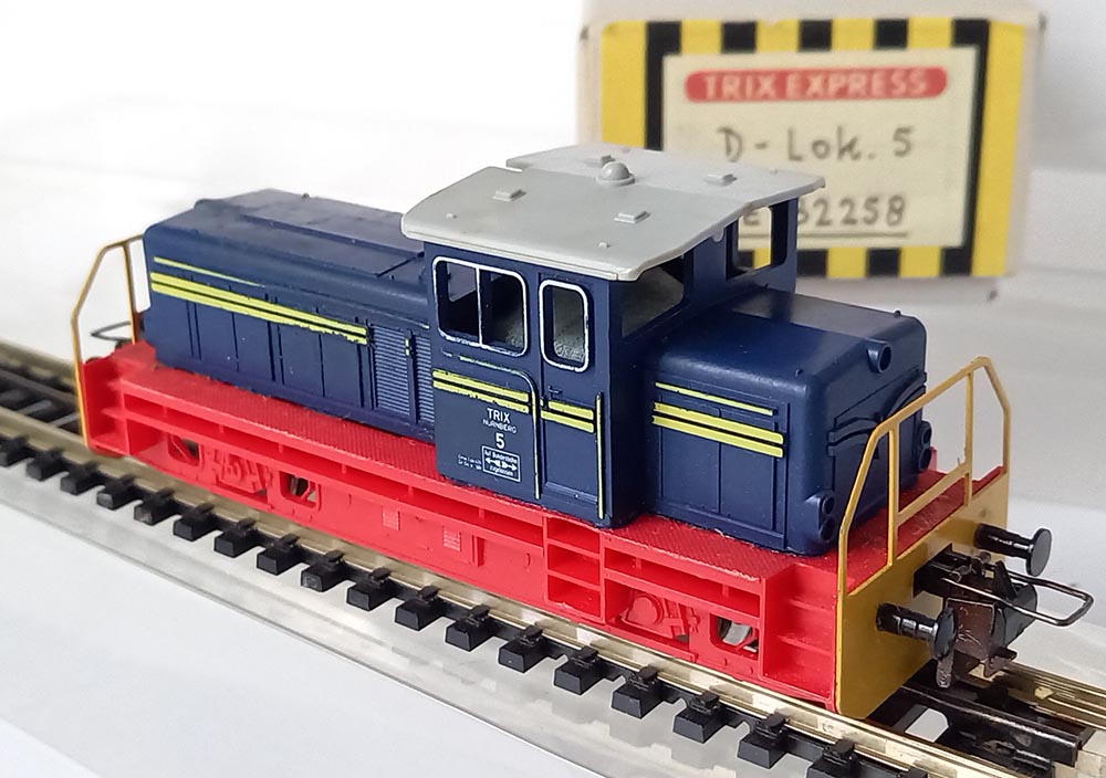 2-assig, blauw, kunststof, lengte 121 mm. Goed rijdend, wordt geleverd in vervangende verpakking.