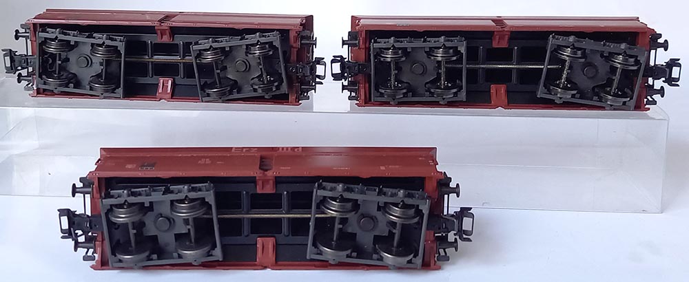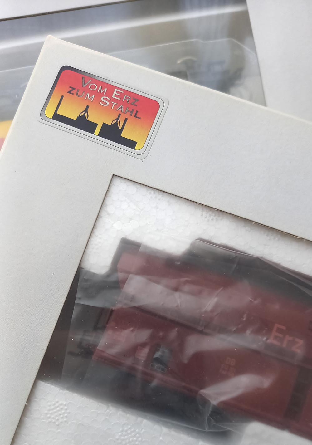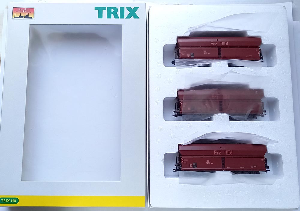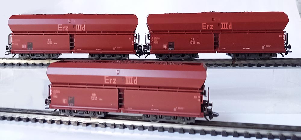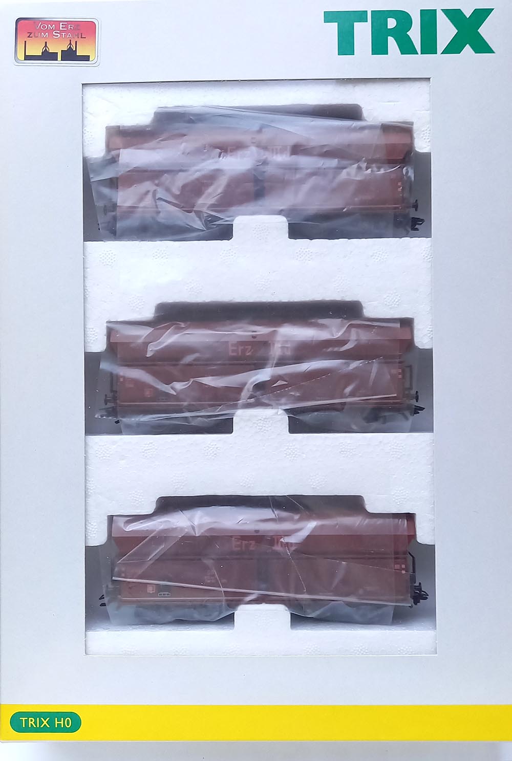 met 3 ertswagens van de Duitse Spoorwegen, type Fad-50 OOtz, Epoche III, Märklin koppelingen, brede wielen, epoche III. Wordt geleverd nieuwwaardig (of nieuw) in originele verpakking. Uitgebracht in 1999.