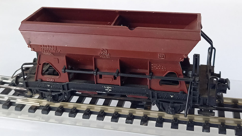 2-assig, bovenbouw kunststof, onderbouw metaal. Goede staat, maar er mist een stukje bovenaan de bak.