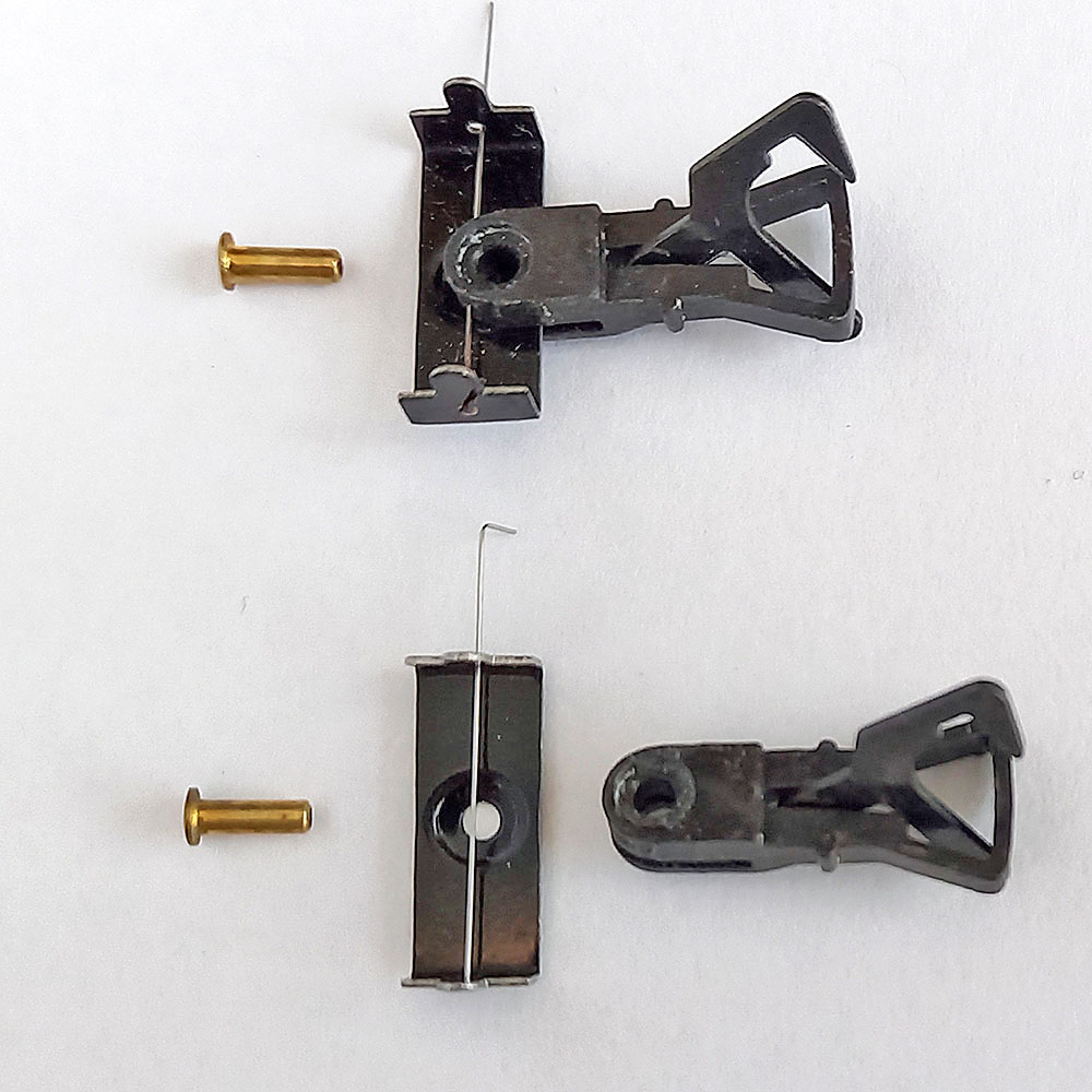 2 x Metalen haakkoppeling, veren, afdekplaatjes en stiften. Goede staat.