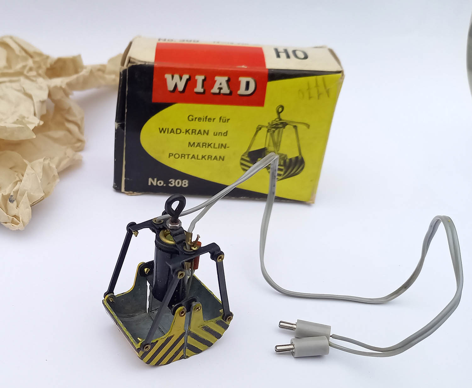 De grijper is electrisch bedienbaar en geschikt voor de Wiad kranen 303 en 307, maar kan ook bij andere modellen gebruikt worden, bijvoorbeeld bij de Märklin kraan 7051. De grijper is in uitstekende conditie, is getest en wordt geleverd in het originele pakpapier en in de originele verpakking.