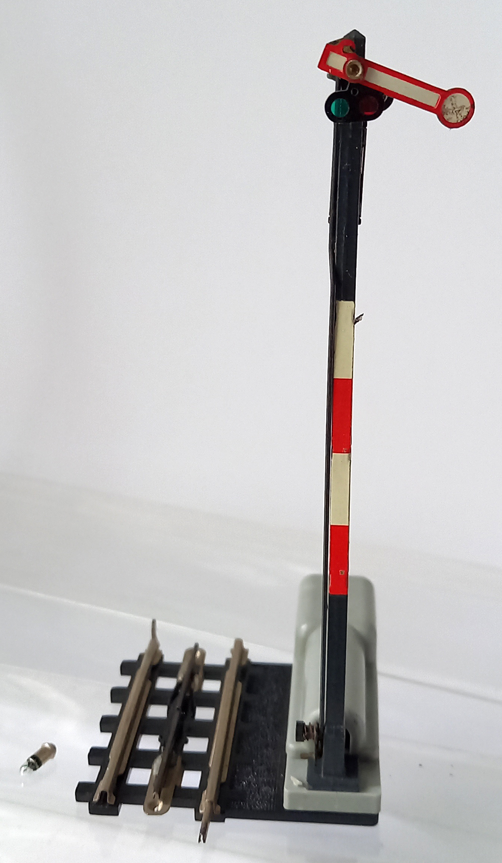 Vleugelsignaal, 12,8 cm, getest. Goede staat, maar lamp moet aangesloten worden hiervoor moet een stukje draad aangesoldeerd worden.