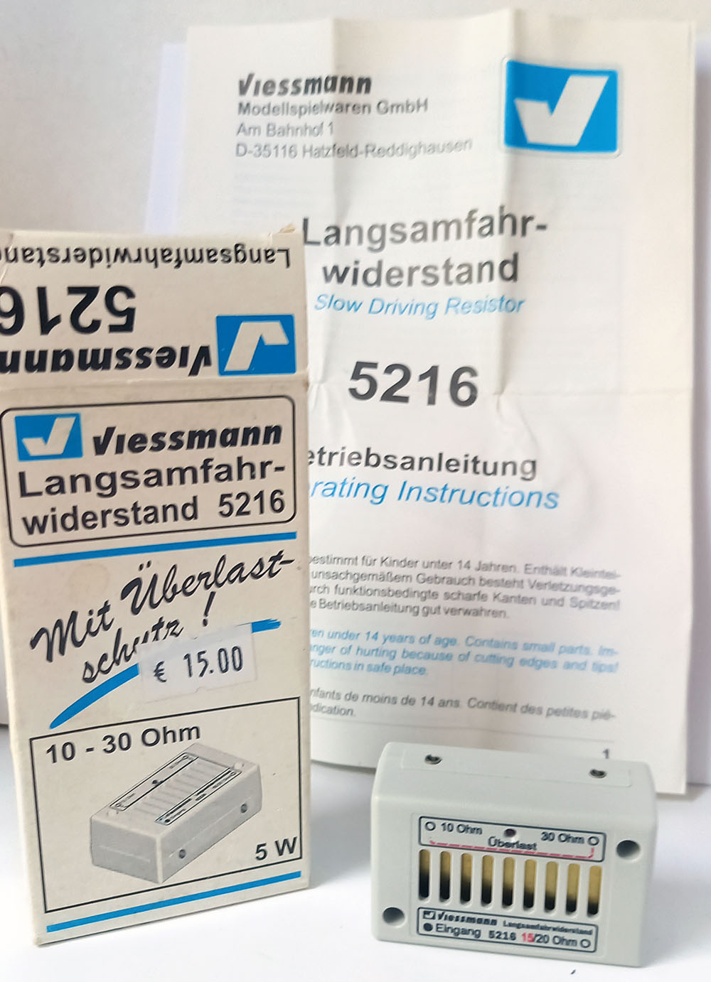 Vermindert de spanning voor bijvoorbeeld krappe bogen, bouwplaatsen of op hellingen. Ingebouwde 5 watt hoogvermogen-weerstanden. De weerstandswaarde kan worden geselecteerd van 10 tot 30 ohm door toewijzing van de aansluitbussen. Kortsluitbeveiliging dankzij temperatuurafhankelijke overbelastingsbeveiliging. Te gebruiken op analoge modelspoorbanen, Gebruik bij digitale modelspoor-banen alleen met ongeregelde locdecoders.