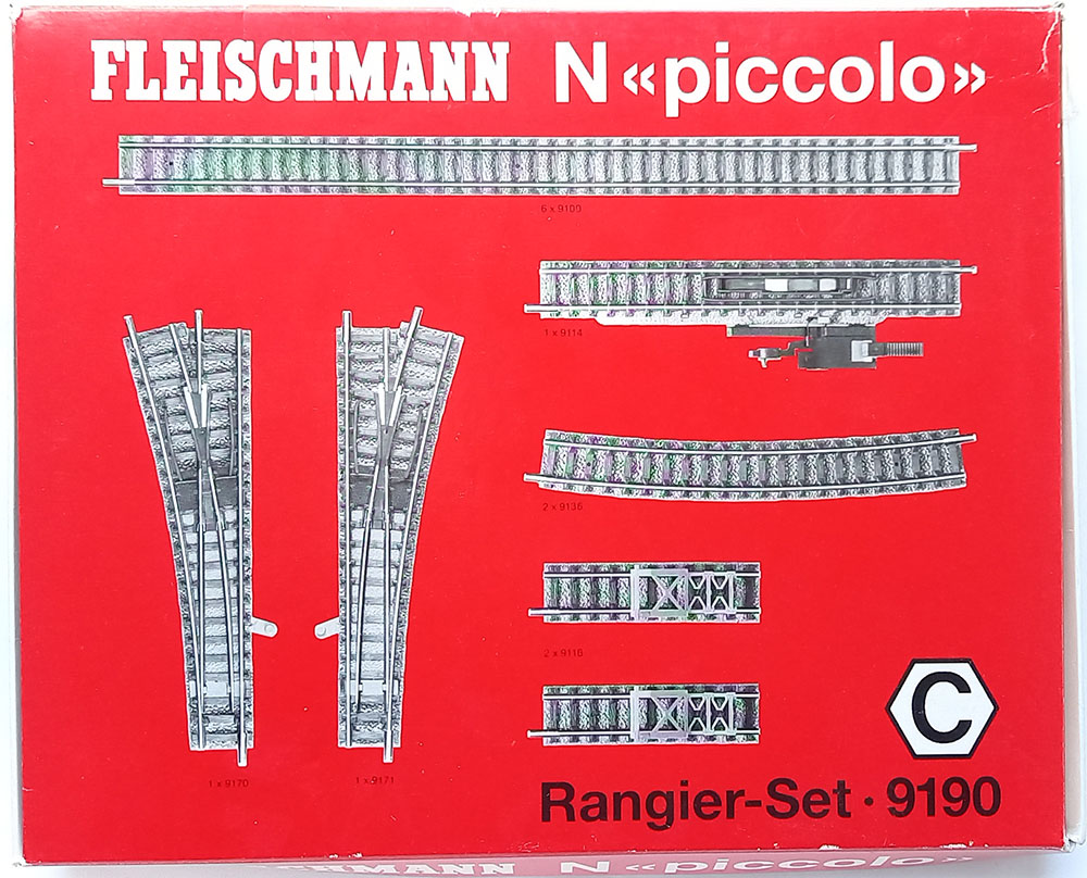 5 rechte rails 9100, 1x9102, 1 ontkoppelrail 9114, 2 stootblokken 9116, 1 gebogen rails 6136, 2 wissels links voor handbediening 6171. Alles nieuw in de originele verpakking. De inhoud is niet helemaal kloppend met wat er in de set moet zitten (daar is met de prijs rekening mee gehouden), maar de inhoud is splinternieuw en dat is altijd fijn.