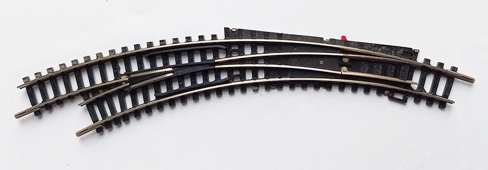 Links meegebogen wissel 15°, R1/R2. Handwissel.