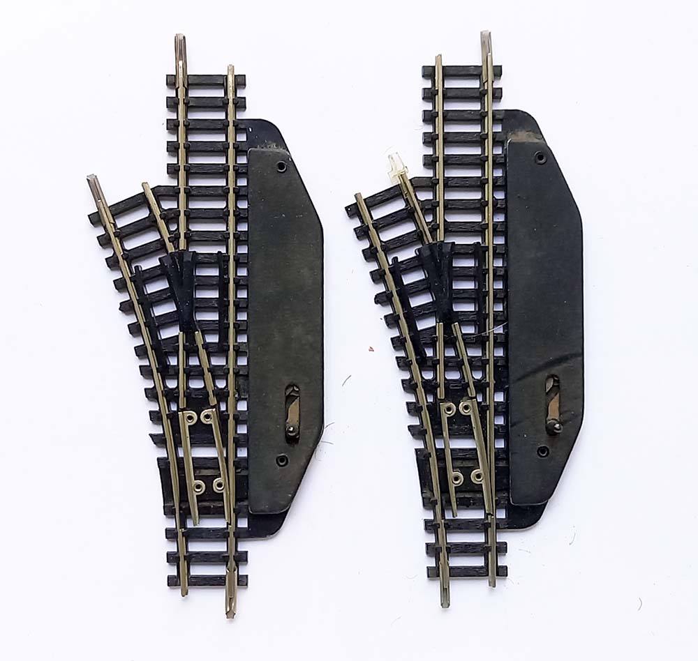 N-spoor. handwissel, 24 gr, 2 x links, oude type met vaste bedieningsplaat. Deze wissel kan niet electrisch gemaakt worden. Prijs is voor 2 stuks.