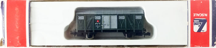 Type Z2, 2-assig, groen, ´PTT´ van de Zwitserse Spoorwegen, produktie 1975- 1977, Epoche 4. Als nieuw in originele verpakking. N-spoor.