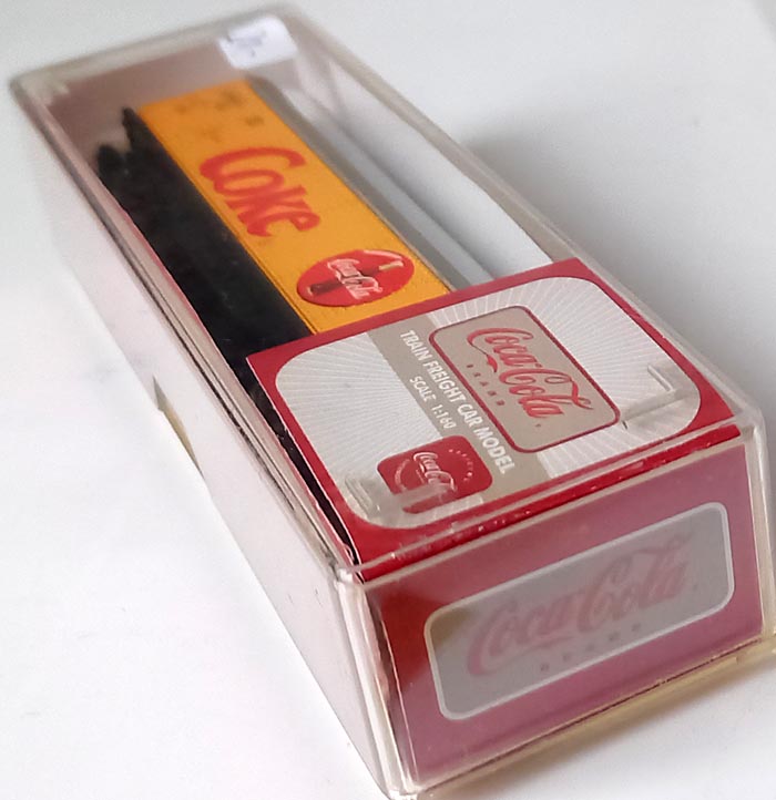Type Hbis-v, 2-assig, geel, met opschrift ´Coke´, lengte 91 mm. Basis: Roco. Epoche IV. Uitstekende staat in originele verpakking. Zeldzaam. Uitgegeven (alleen) in 2003.