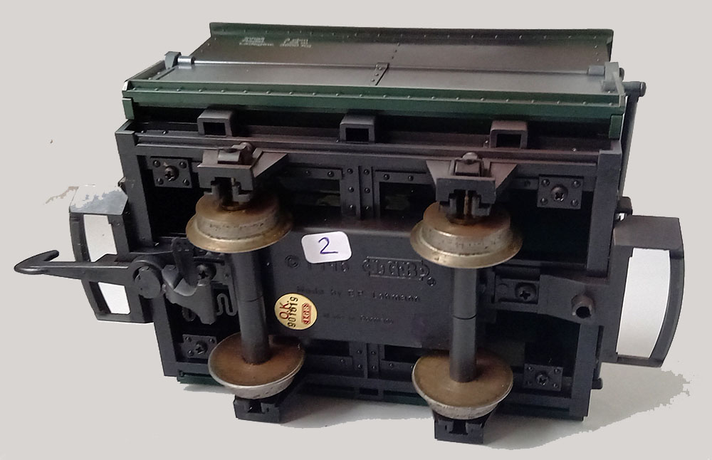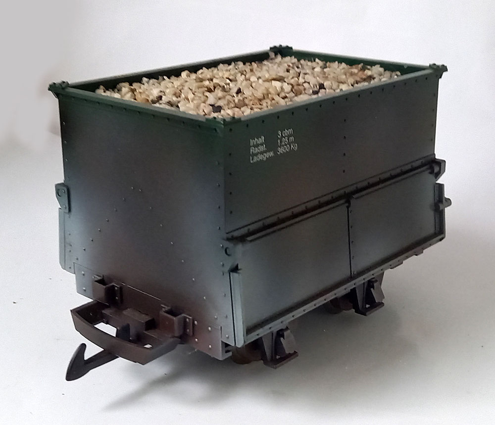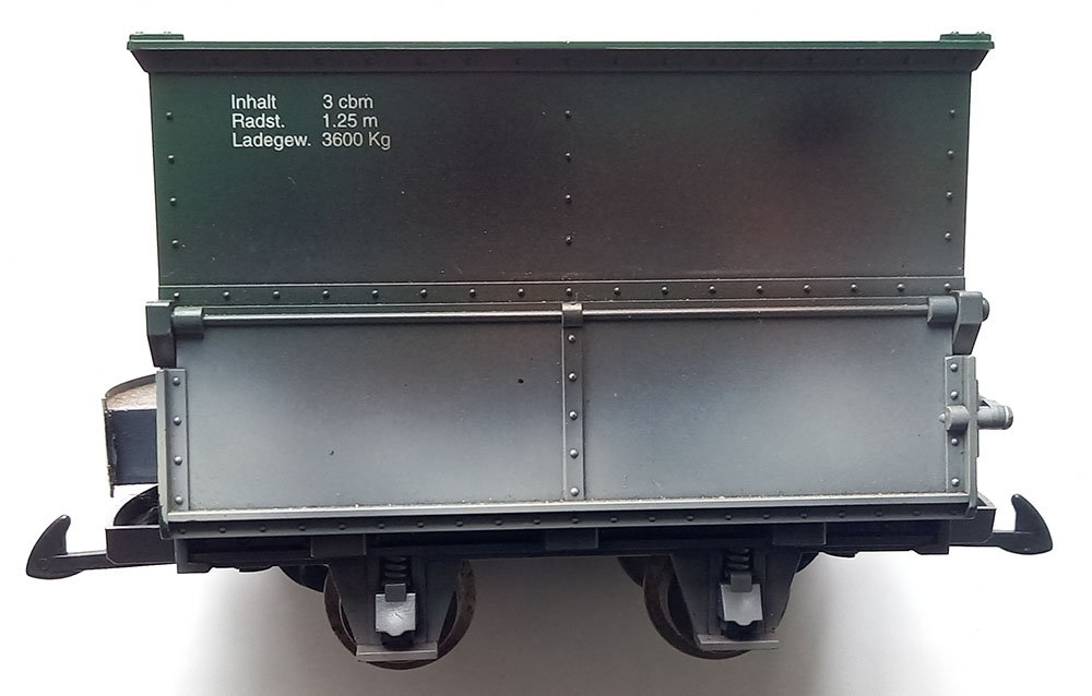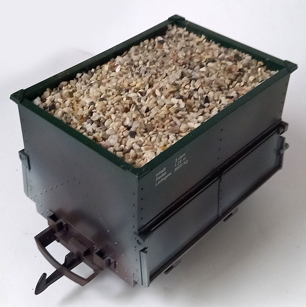 Produktie uit 1996. Geweathered en beladen met grind (niet uitneem-baar). Goede staat, versterkte koppelingsveren, metalen wielen, kleppen niet werkend. 6 stuks voorhanden. Uitstekende staat.