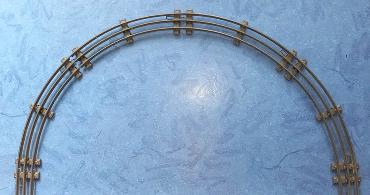 Spoor-0. Rails voor het maken van een ovaal, bestaande uit 8 standaardbochten en 8 rechte rails (standaard). Met geïsoleerde middenrail, geschikt voor electrisch rijden. Goede staat.
