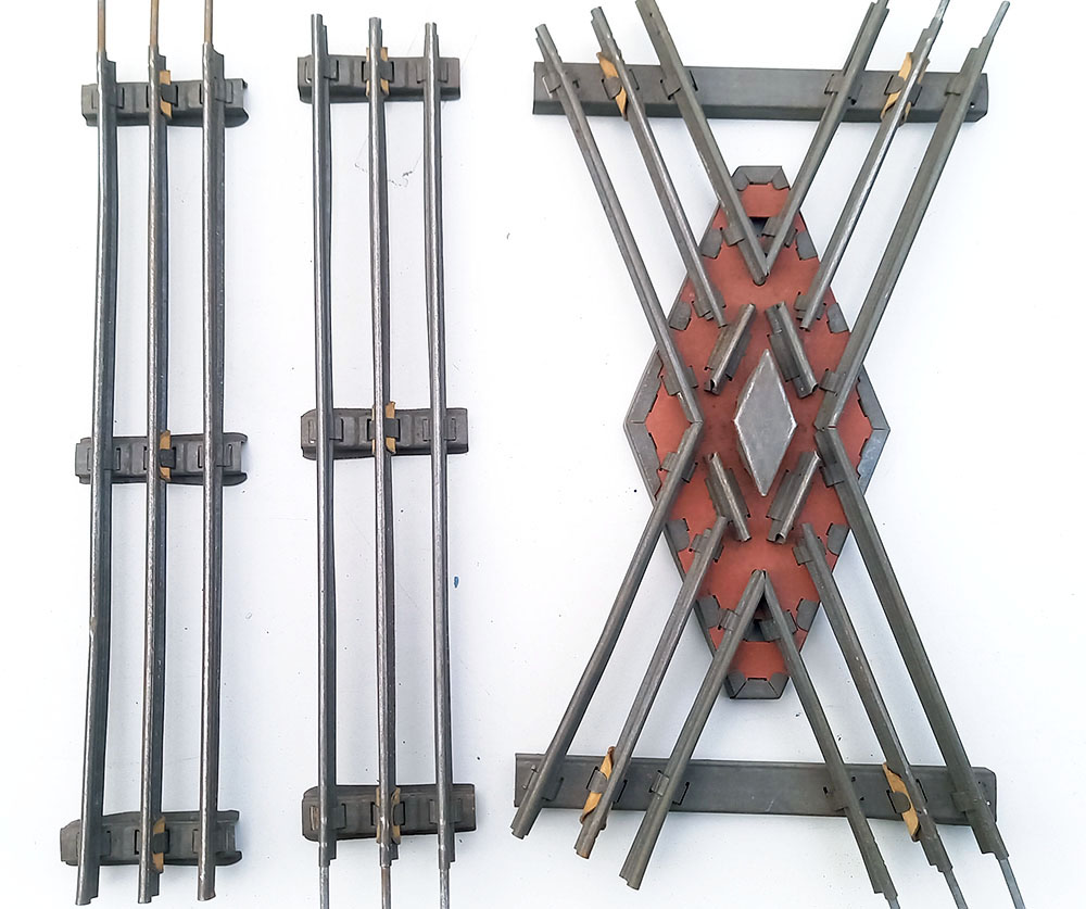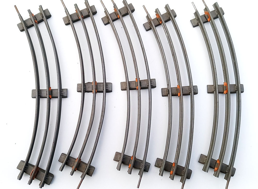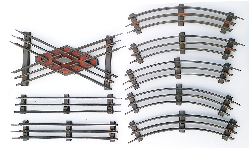 Spoor-0. 5 stuks gebogen, 2 stuks recht en 1 fantastische en bijzondere kruising.Kavel mag weg voor € 20,00.