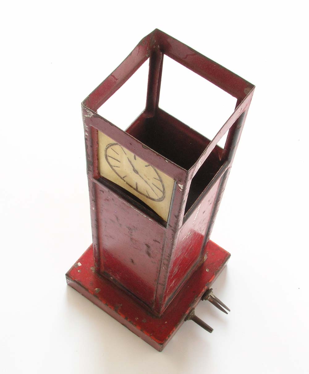Märklin perronklok geproduceerd van 1828-1936. Aansluiting voor verlichting. Afmetingen: 50 mm breed x 130 mm hoog. Incompleet en bespeeld.